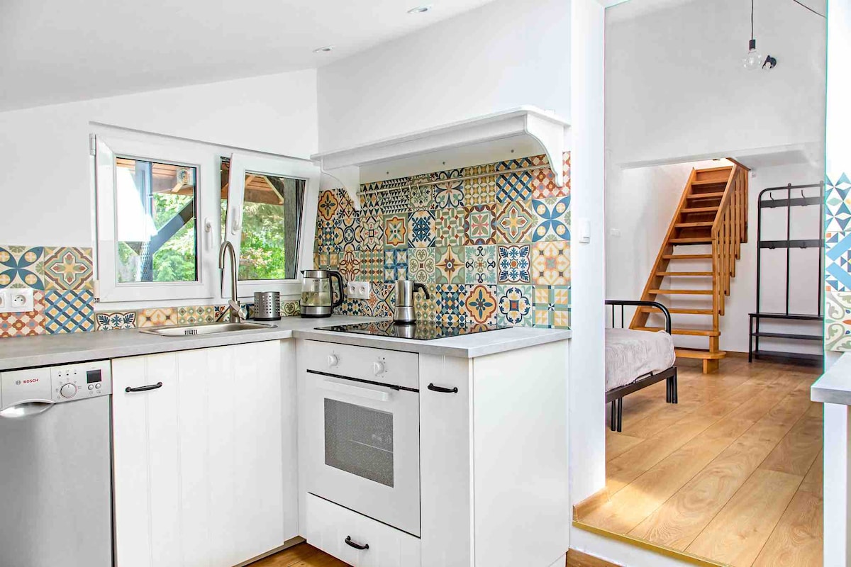 Doğanın göbeğinde bulunan Villa Mycyna'daki büyüleyici kır evlerimize hoş geldiniz. Her kır evinde 2 yatak odası, tam donanımlı bir mutfak, şömineli rahat bir oturma odası, modern bir banyo ve bahçeye bakan bir teras bulunmaktadır. Bahçe jakuzisi, ızgara, bisikletler ve oyun odası vardır. Göl ve orman yakınında huzur ve konfor arayan aileler, çiftler ve arkadaş grupları için mükemmel bir yer.