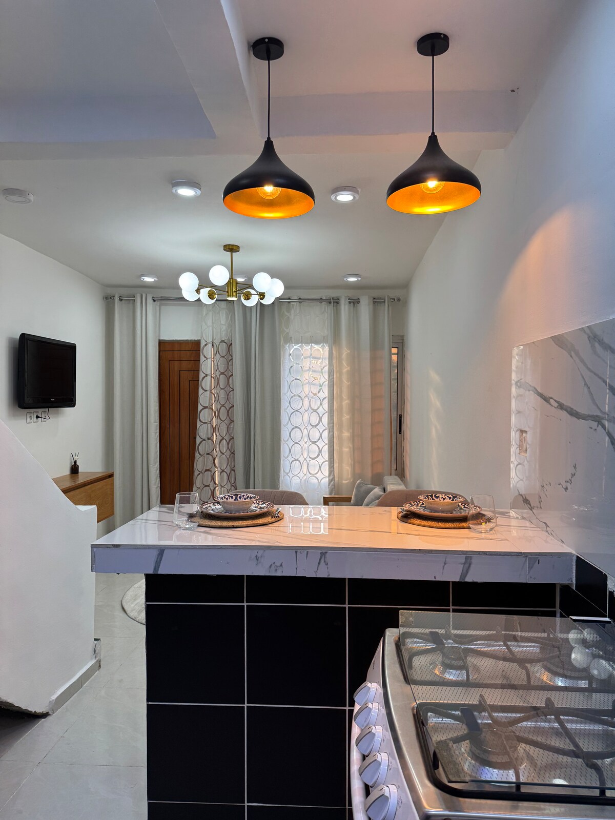 Kribi'nin göbeğinde kendinize zarafet ve huzur dolu bir mola verin. Ngoye bölgesinde, tam olarak Bakoko kavşağında yer alan bu mobilyalı stüdyo daire, iş amaçlı konaklamalarınız, çift olarak yapacağınız kaçamaklar veya deniz kenarında dinlenme anlarınız için ideal olan şık, sakin ve zarif bir atmosferde sizi ağırlıyor. Konfor ve inceliğin buluştuğu rahat ve lüks bir atmosfer yaratmak için her ayrıntı düşünülmüştür. Kribi'yi nezaket, lüks ve dinginliği bir araya getiren bir ortamda, farklı bir şekilde deneyimleyin.