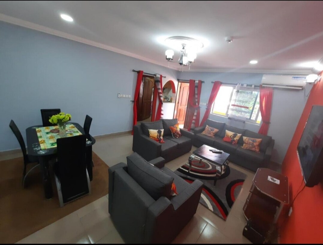 Se sentir chez soi ailleurs. Appartement meublé de 2 chambres pour 4 personnes (possibilité de mise à disposition d'un matelas d'appoint pour 2 personnes supplémentaires moyennant supplément), au sein d'une résidence privée de 1500 m2 composée de 4 appartements en bord de mer à Kribi, Cameroun. Possibilité de réserver l'ensemble de la résidence (selon disponibilités), pour cela contactez-nous. Capacité totale d'hébergement de la résidence est de 10/12 personnes.