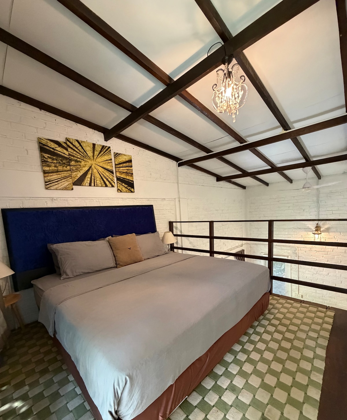 Experience stunning architecture with panoramic views of lush paddy fields and Mat Chincang Mountain. This package includes two bedrooms with ensuites: Villa Anjung, featuring a private living area and mini pantry, and Teratai Studio, a queen bed and three bunk beds. Relax in the 24'x10' infinity pool and enjoy the architecturally stunning Serambi living and dining area. For larger groups, please check our other listing to book the entire villa, including Teratai Dormitorio with four queen beds