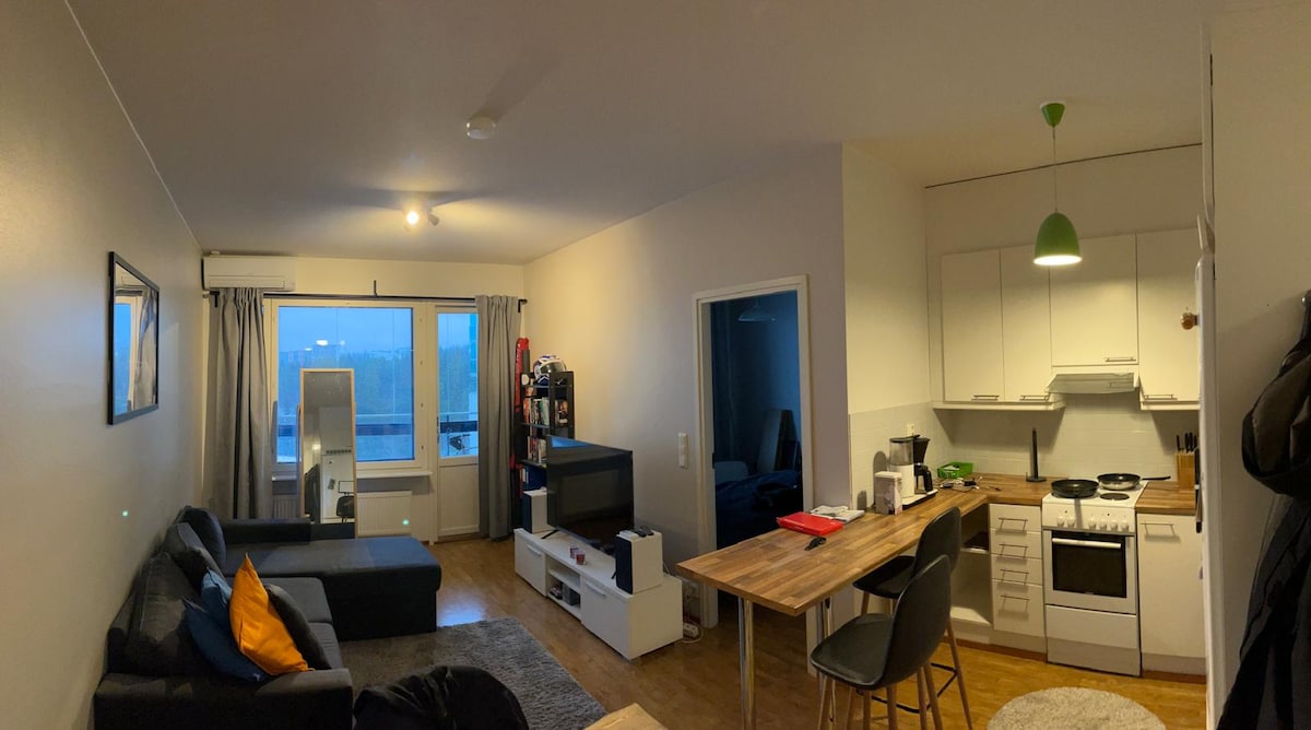 Bu 44 m2'lik şehir dairesinde huzurlu ve zahmetsiz bir zaman geçirin. Neşeyle dekore edilmiş, çok iyi donanımlı mutfak, özel sauna, geniş balkon. Şehir merkezi 3 km'den daha az uzaklıktadır, bisiklet, otobüs veya arabayla ulaşılabilir. Dairenin neredeyse ön kapının önünde kendi park yeri var. Yaklaşık 100 metre uzaklıkta, hem açık hava etkinlikleri hem de dağ bisikleti için K-market ve Puijo doğa parkurları var! Burası benim kendi evim ve seyahat ederken daireyi kiralıyorum:) Ayrıca burada yaşayan bir köpek de var.