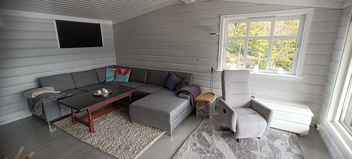 Büyük tatil evi. - Büyük kapalı yüzme havuzu. - Spa banyosu -5 yatak odası -2 banyo: Ayrı TV, oyuncak, futbol maçı bulunan çocuk odası. Yaz kış için harika. Yaz: Norveç'in güneyinde ve iç kesimlerinde daha yüksek sıcaklıklar elde etme şansınızı artırır. Güzel bir plaj ve evden 50 metre uzaklıktaki tatlı suya rıhtım. Balık tutma ve yüzme. Kapının hemen dışında birçok güzel yürüyüş var. Kış: Yolun hemen karşısındaki kros parkuru. Bobsled/kızak eğlencesi için birkaç tepe Yokuş aşağı kayak merkezi kısa sürüş mesafesinde