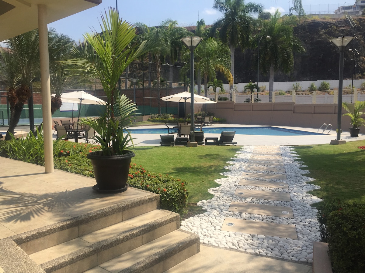 Modern minimalist-style apartment in Samborondón, located in a privileged area with 24/7 private security. Ideal for families or executives seeking comfort and tranquility. Right in front of El Dorado Mall. It features 3 bedrooms, each with a TV with Netflix and air conditioning. The living room includes a 65” TV. You also have 100 Mbps high-speed internet, perfect for working comfortably and enjoying a practical, relaxing stay.