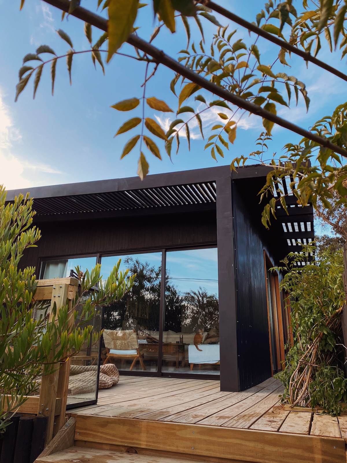 Bu sıcak ahşap evde okyanusun yanında ve gölcüklerle çevrili bir tatilin tadını çıkarın. Santa Monica'da, Jose Ignacio'nun çarpıcı bölgesinde bulunmaktadır (Jose Ignacio'nun deniz fenerine sadece 5 km). Burası ziyaretçilere huzurlu ve dinlendirici bir ortam sunuyor. Yakındaki iki göl nedeniyle birçok kuş ve yaban hayatı vardır; dinlenmek ve eğlenmek için özel bir yer.