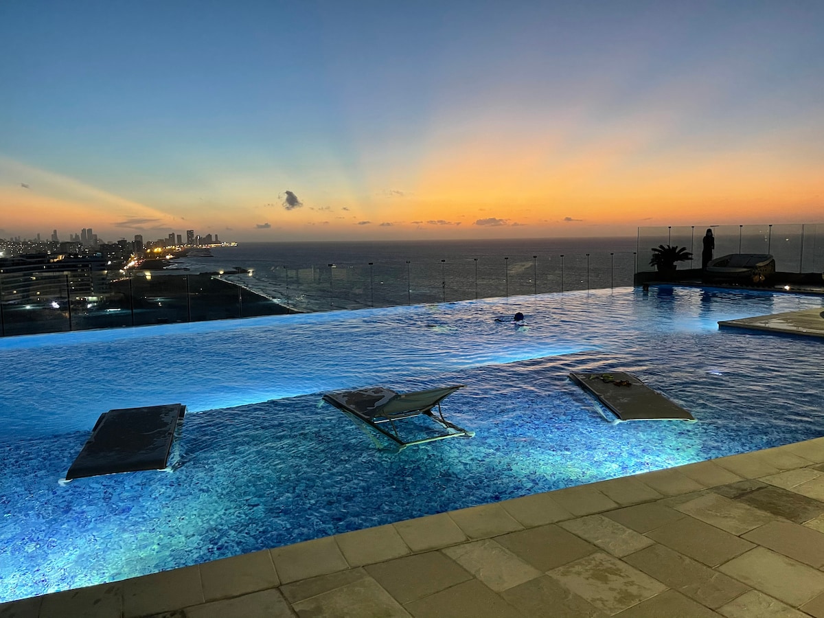 Karayip esintisinin tadını çıkarmak için balkonlu ve hamaklı modern daire. Okyanus manzarası, tüm alanlarda klima, hızlı kablosuz internet bağlantısı, donanımlı mutfak ve akıllı TV. Kuzey bölgesinde, Tarihi Merkez'e 10 ila 15 dakika ve havaalanına 5 dakika mesafededir. Çiftler, iş için seyahat edenler ve kısa süreli konaklamalar için idealdir. Konaklamanız boyunca esnek giriş ve sıcak ilgi." Çatıda sonsuzluk havuzu, jakuzi, sauna, Türk hamamı ve spor salonu. Keyif almak ve dinlenmek için ideal.