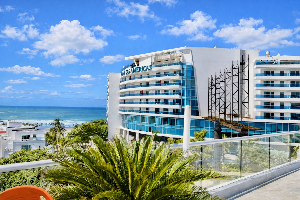 Balkonlu ve çatı jakuzili okyanus manzaralı daire. 6 misafire kadar rahatça konaklama sağlar, aileler, arkadaşlar veya iş seyahatleri için mükemmeldir. Tam donanımlı bir mutfak, akıllı TV, kablosuz internet bağlantısı, klima, sıcak su, çamaşır makinesi ve kurutucu ve özel otopark bulunmaktadır. Morros Plajı'na bir blok mesafede ve Las Américas Kongre Merkezi'nin yanında, havaalanına 5 dakika ve Eski Şehir'e 10 dakika mesafededir. Binadaki olanaklar arasında spor salonu ve Karayipler'e bakan 2 jakuzili çatı terası bulunmaktadır.