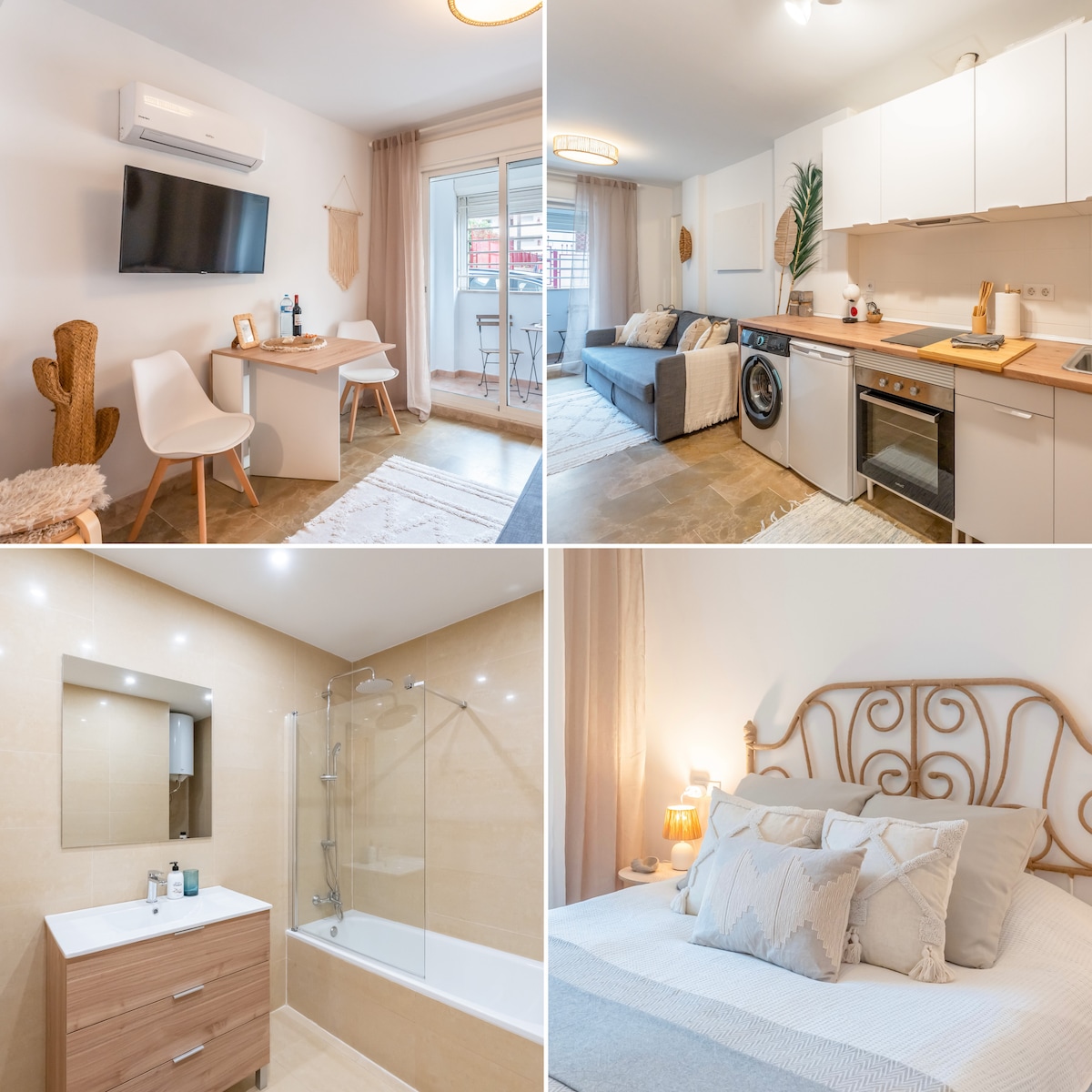 Torremolinos'un kalbinde, tamamen yenilenmiş bu daire aileler, çiftler veya arkadaşlar için modern ve konforlu bir tatil evi sunar. Daireye girer girmez ferah ve aydınlık alana şaşırırsınız. Hepsi klimalı ve yeni yataklı üç geniş çift kişilik oda, iyi bir gece uykusu için mükemmeldir. Ardından açık mutfak ve yaşam alanlarına girin. Şık tasarım, yaşam alanı farklı alanlardan akar.