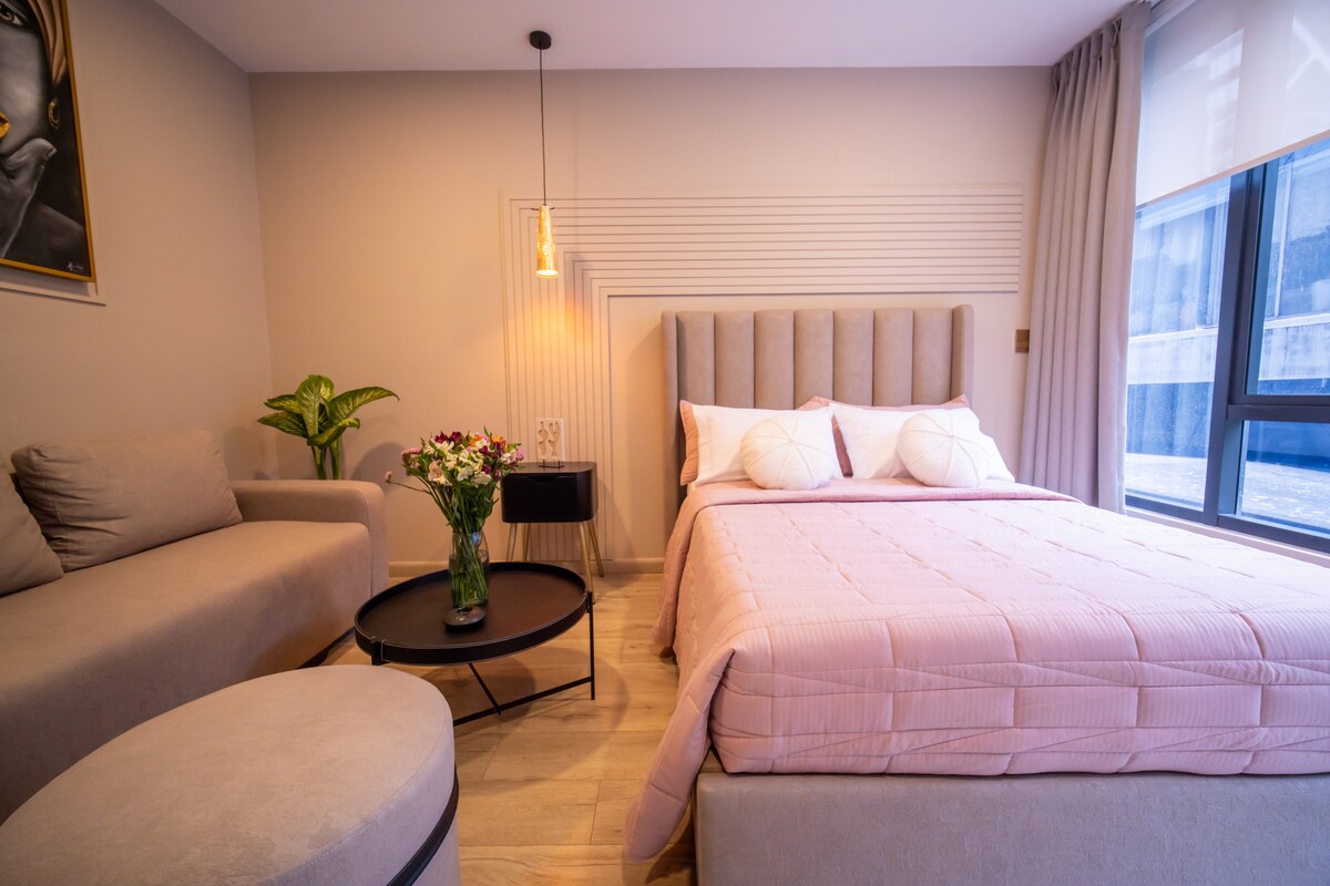 Birinci sınıf bir binada tamamen yeni modern stüdyo daire Konaklamanızı tamamen keyifli hale getirmek için eksiksiz bir donanıma sahiptir. Stüdyoda şunlar var: tam donanımlı mutfak tam banyo Çift kişilik yatak çamaşır ve kurutma makinesi ütü amazon prime ile tv Alexa Bluetooth ile bağlanan ses ve müzikli şömine armatörler havlular Park yeri kendi balkonu Binada şunlar var: Havuz Ortak Çalışma Alanı Jakuzi Sosyal oda bilardo poker masası Türk saunası ıslak alanı Çocuk alanı buluşma alanı Barbekü.