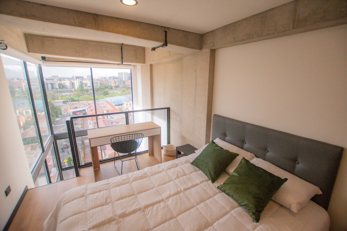Lemon Studio'ya hoş geldiniz🍋! Bogotá'nın göbeğinde, 2 misafire kadar ideal olan modern ve konforlu bir stüdyonun keyfini çıkarın. Sessiz La Esmeralda semtinde, Campín, Movistar Arena, Centro de Experiencias Vive Claro, Parque Simón Bolívar, Botanik Bahçesi ve Amerikan Büyükelçiliği'ne kısa bir yürüyüş mesafesindedir. Şehirdeki işler, çiftler veya etkinlikler için mükemmeldir. (Konaklama yerinin otoparkı YOK)