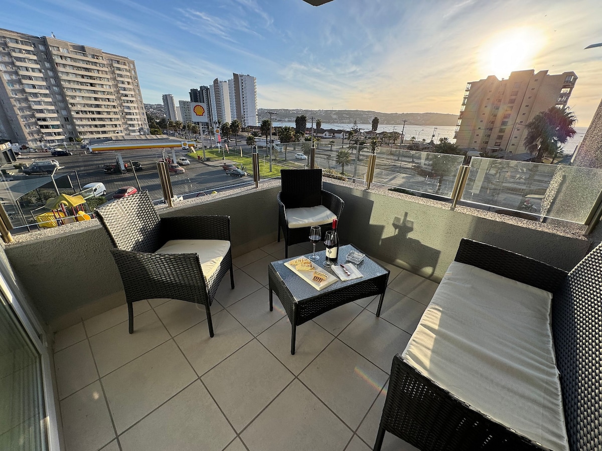 Espectacular apartamento con vista al mar en playa La Herradura,. Conexión directa a la autopista, con estacionamiento, a 3 minutos caminando de la playa, cruce seguro (puente peatonal). A pasos de restaurantes, supermercados, farmacias y otros comercios. Incluye las sillas de playa para que puedas ir cómodamente a la playa en familia. Acceso a piscina, gimnasio y quinchos dentro del recinto. *Actualmente hay una construcción al lado con ruido en horario laboral*