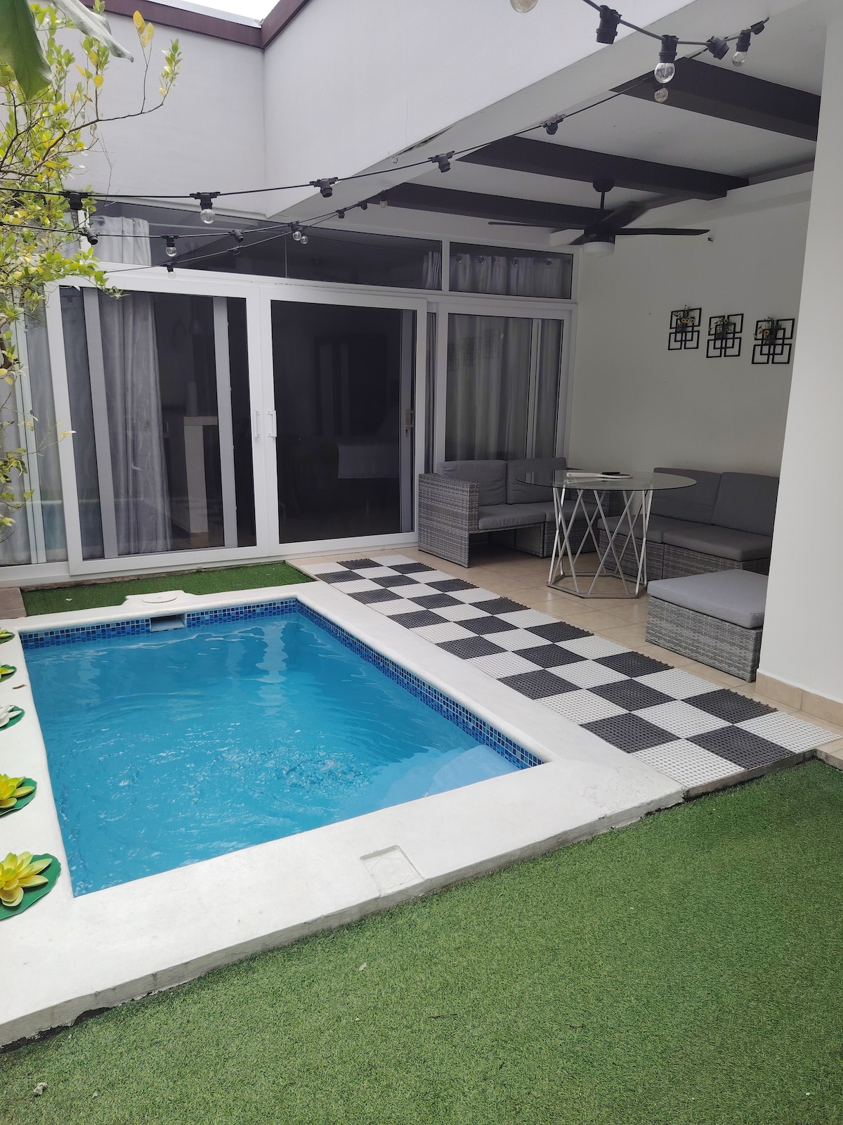El estudio está muy bien equipado con todo lo necesario ideal para 2 personas que buscan un lugar tranquilo en buena ubicación Cuenta con una pequeña cocina, cama Queen size, área de trabajo, TV con Netflix, baño privado. El estudio está en la segunda planta. 🏊♀️ La piscina es compartida y su uso es hasta las 10:00pm 🚫 No es permitido las visitas. 👮Solicitamos imagen de identificación de acompañante. ⚡️El edificio NO cuenta con generador eléctrico. Tomar en cuenta todos los reglamento.
