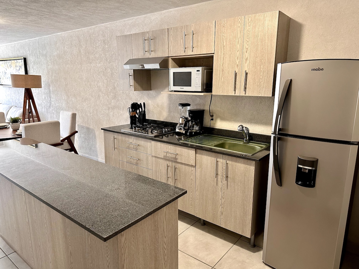 Bu daire, Guadalajara'nın merkezindeki popüler bir bölgede konforlu ve iyi donanımlı bir köşedir. Her şeye yakın olmak istiyorsanız: Tarihi merkez, Cabañas Müzesi ve San Juan de Dios Pazarı'na sadece birkaç adım uzaklıkta. Ayrıca Batı Ulusal Tıp Merkezi, Yeni Devlet Hastanesi'ne de çok yakındır. UdeG'nin CUCS'sine birkaç dakika mesafede. Turlarınızdan sonra, bu konforlu daire size dinlenmek için sakin ve keyifli bir alan sunuyor.