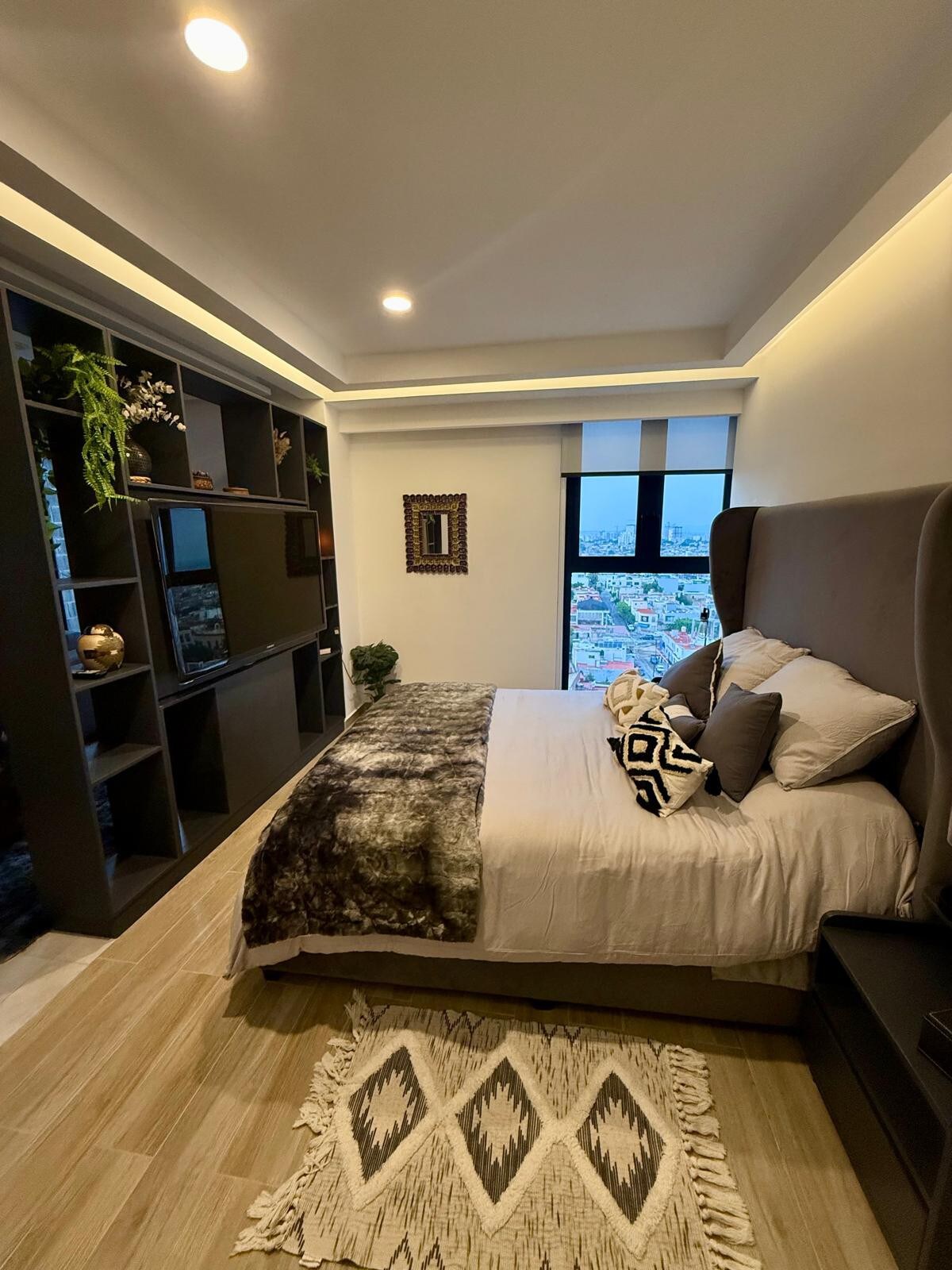 -22. kat yüzme havuzu - Şehir manzaralı güzel bir spor salonu. - Uzun konaklamalar için tam donanımlı - Otopark mevcuttur (ek ücret karşılığında). - Temizlik hizmeti: 7 geceden fazla rezervasyonlarda haftada bir kez. İster iş ister eğlence için seyahat edin, Midtown Jalisco alışveriş merkezinin yakınındaki Providencia semtindeki yepyeni bir lüks kulede bu modern stüdyonun keyfini çıkaracaksınız.