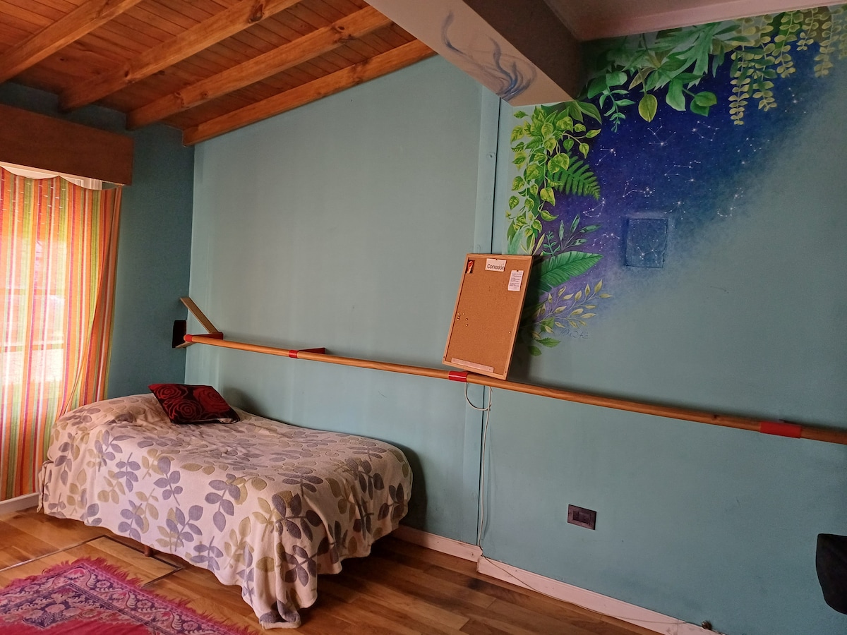 Habitación y baño en planta alta, propios del huésped. Los espacios compartidos se encuentran en planta baja.