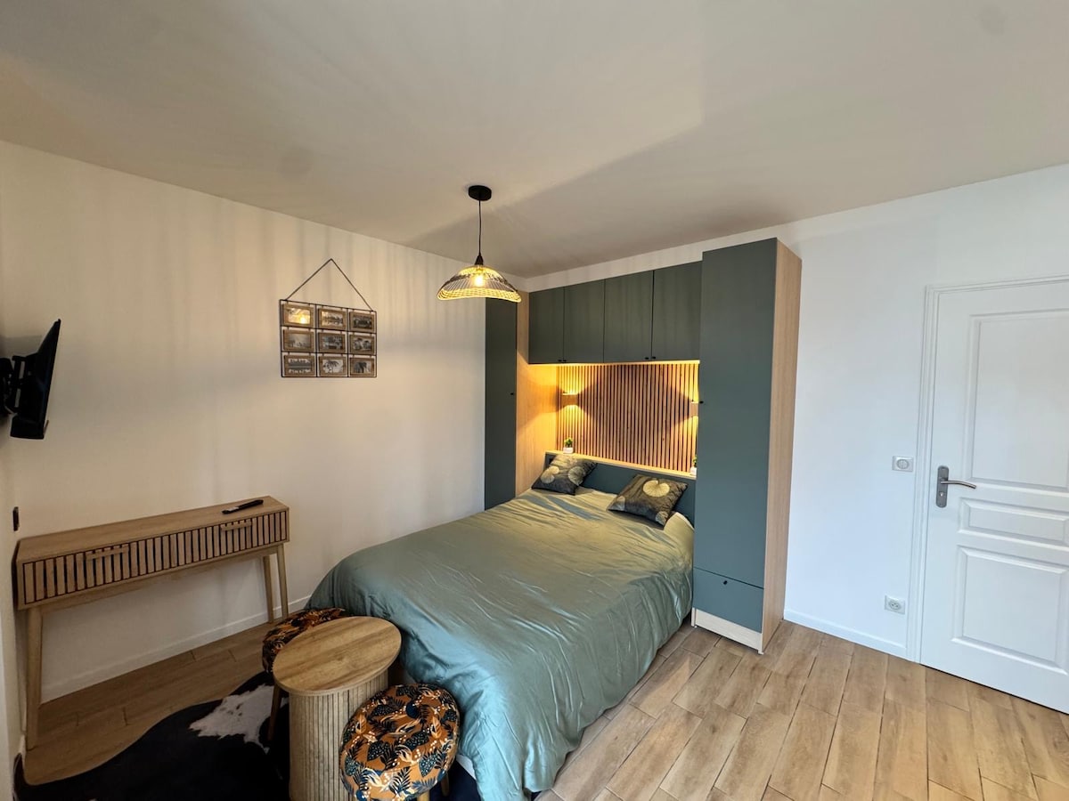 40 m2'lik konforlu daire, 4 kişi - 5 dakika mesafede (sinema, buz pateni pisti, bowling, karting, restoranlar. - Paris'e direkt tren. - Fontainebleau Şatosu, Vaux le vicomte - Barbizon Yeni yenilenmiş daire: - 160x200 yataklı 1 yatak odası + giyinme odası - Oturma odası (140x190 çekyat) - Donanımlı mutfak - Banyo - Havlular + çarşaflar - Sokakta ücretsiz park yeri - MOLOTOV uygulaması ile TV - İsteğe bağlı ücretsiz çocuk katlanır beşik - Çalışma masası + Fiber internet