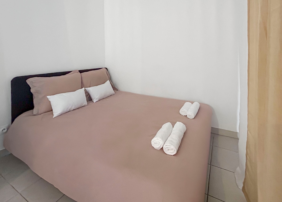 Napoule köyünün girişindeki Château Plajı'na sadece 500 metre uzaklıkta, bu aydınlık ve ferah zemin kat dairesi, doğa ve köy arasında, Mont San Peyre doğal alanının eteklerinde, havuz ve petank alanına sahip, güvenlikli ve bakımlı, sessiz bir lüks rezidansın içinde bulunmaktadır. Çift kişilik yatak, banyo, mutfak ve aydınlık bir oturma odasından oluşan kapalı bir uyku alanına sahip güzel bir daire. Konaklama vergisi: 14004*04