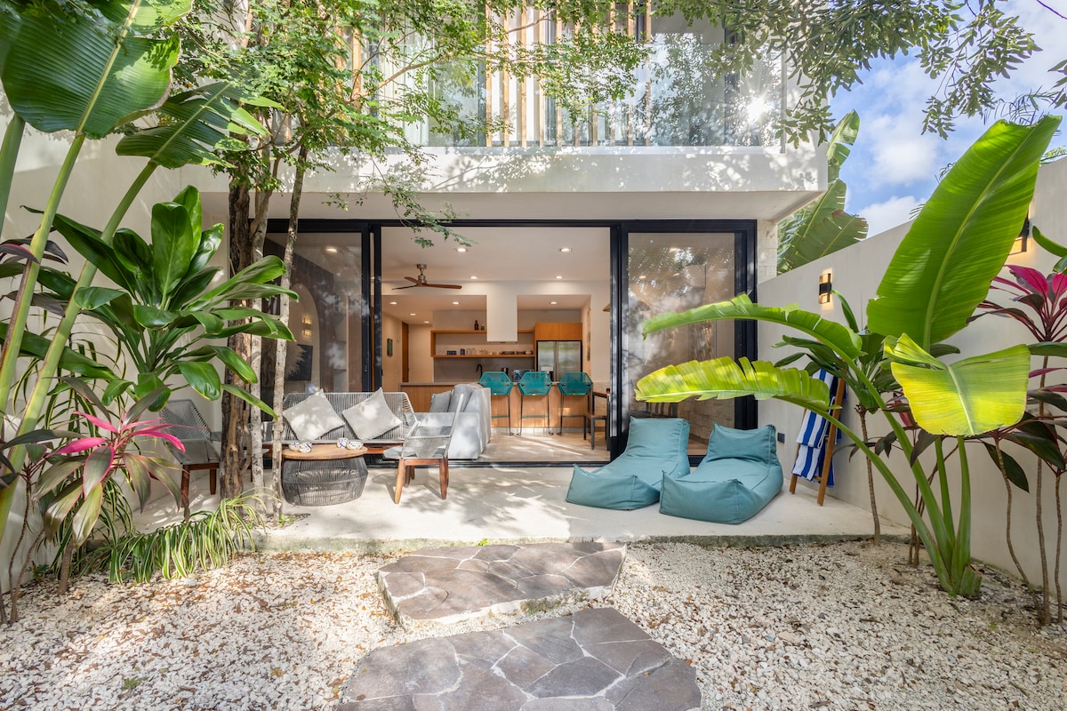 A combination of Italian and Tulun design: dreamy and tropical common area with 2 beautiful pools to chill and unwind peacefully while getting a so longed for Caribbean tan. This comfortable and fully equipped Penthouse, a lovely nest to come home to after a long and adventurous day on the beach has everything you might need for a relaxed stay: AC, ceiling fans, WIFI and comfy details all thoughtfully chosen for your most special time in Tulum. Relax and enjoy, we will take care of you! Welcome!