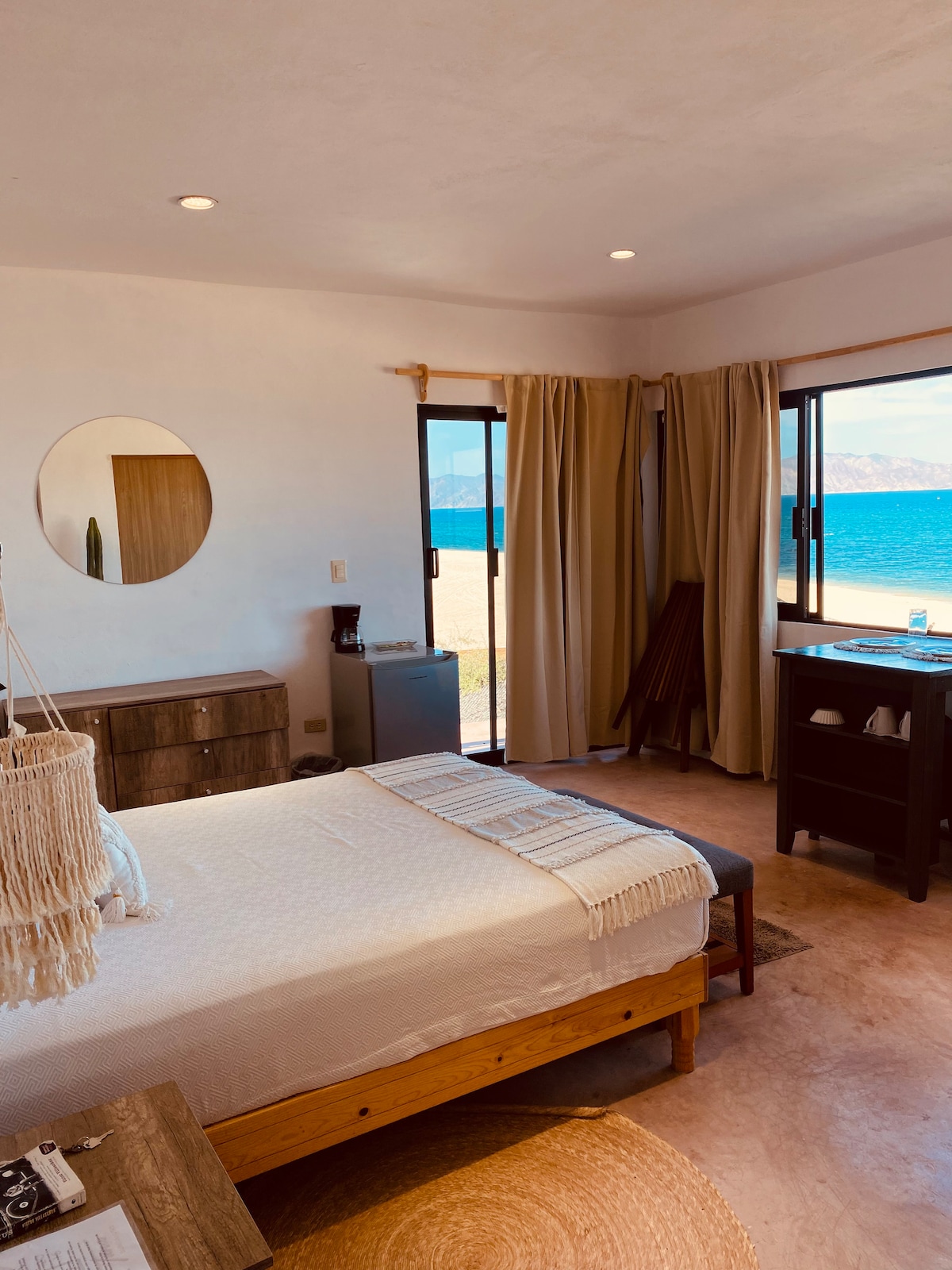 Designed for wind-chasers and peace-seekers alike, our new modern casita is your serene basecamp; Enjoy the simplicity of this quiet, centrally located lodging. This property is special because it was designed with lovers of the sea, wind, and tranquility in mind. Just a 5-minute walk from the beach , boat ramp and Playa Central, this new house combines modern comfort, reliable Starlink satellite Wi-Fi, and a relaxed atmosphere with spectacular views of the bay and the desert All property yours