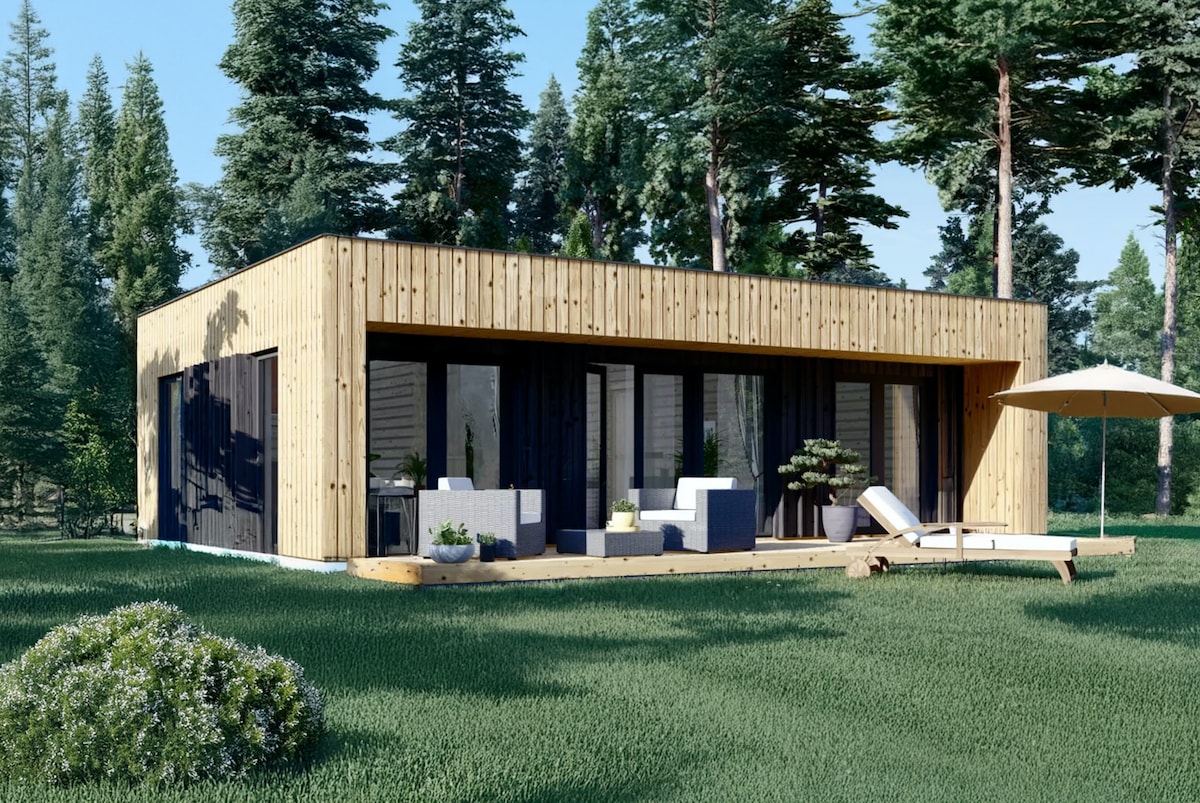 Bir gece, bir hafta sonu veya bir hafta boyunca, ahşap ayaklar üzerinde duran sıcak ve konforlu bir ahşap kulübede dinlenmeye gelin! Otel hizmetlerinden yararlanabileceksiniz, yatak (queen size) hazır, havlu temin edilecek, oda temizliği ve dezenfeksiyonu dahildir. Büyük küvet size dinlenme anları vaat ediyor. Mutfak alanı bağımsız olmanızı sağlar.