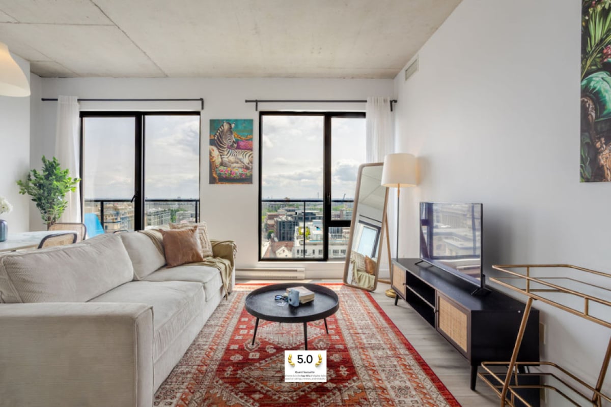 Şehir merkezinin göbeğinde, Bell Center'a doğrudan erişimi olan konut! Ücretsiz kahve, ekmek kızartma makinesi, su ısıtıcısı ve tüm mutfak aletlerini içeren tam mobilyalı bir yatak odalı konutunuzda lüks ve konforla konaklamanızın tadını çıkarın. Sauna, havuz, çok sayıda ağırlık ve makineye sahip spor salonu, gökyüzü salonu, oyun odası, salon ve birden fazla barbeküye sahip teras, hepsi hizmetinizde! Ücretsiz yeraltı otoparkının ve dışarı adım atmadan metro sistemine 1 dakikalık erişimin keyfini çıkarın! Netflix dahil.