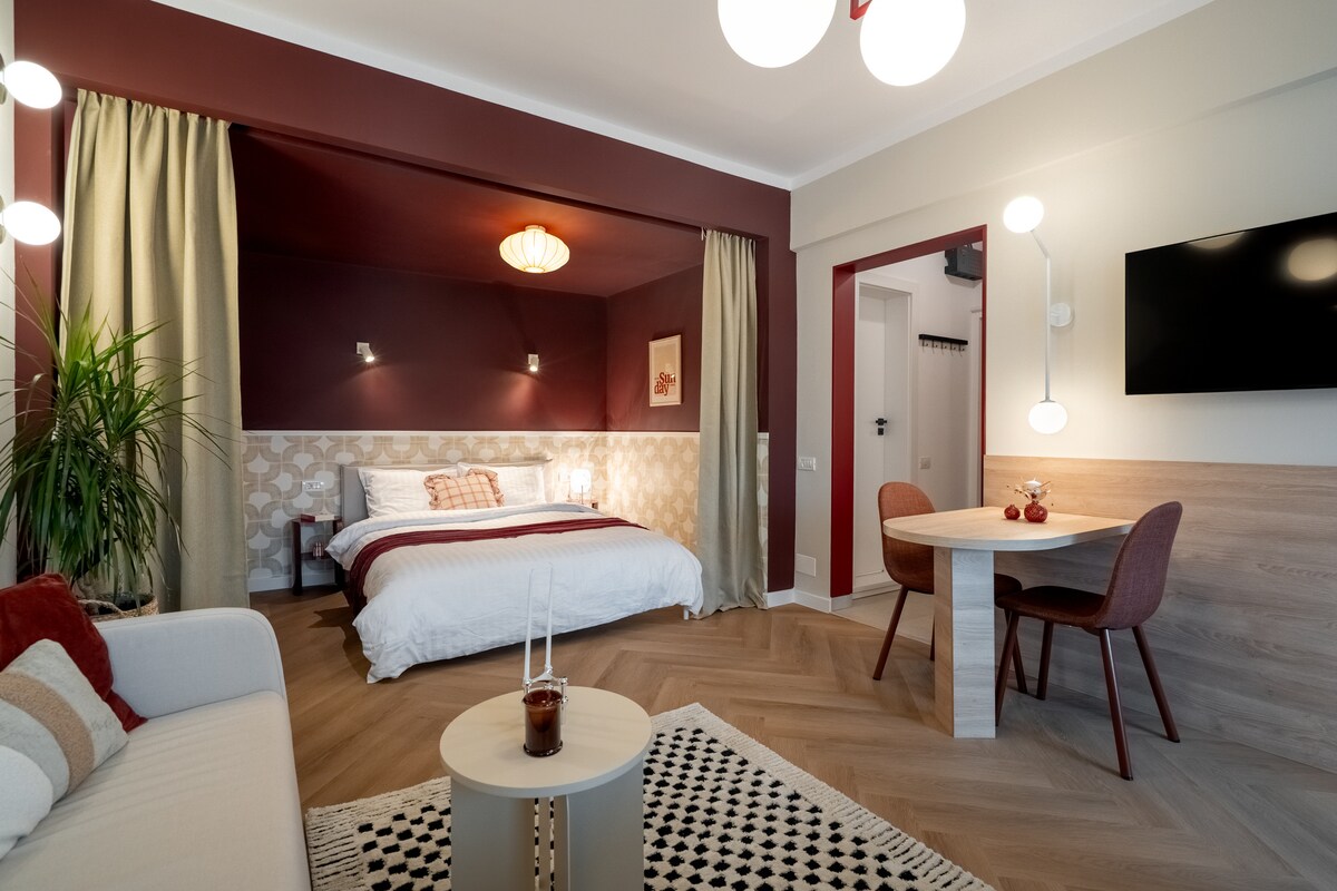 Bu güzel ve şık stüdyo, Bükreş'in göbeğinde, Brezoianu Caddesi'nde, Eski Şehir'e kısa bir yürüyüş mesafesinde bulunmaktadır. Konum olarak bundan daha iyisi olamaz. Toplu taşımayla (otobüs ve metro) mekâna kolayca ulaşılabiliyor. Bu şık daire 2021 yılında tamamen yenilenmiştir ve mükemmel bir konaklama için mümkün olan tüm olanaklara sahiptir.