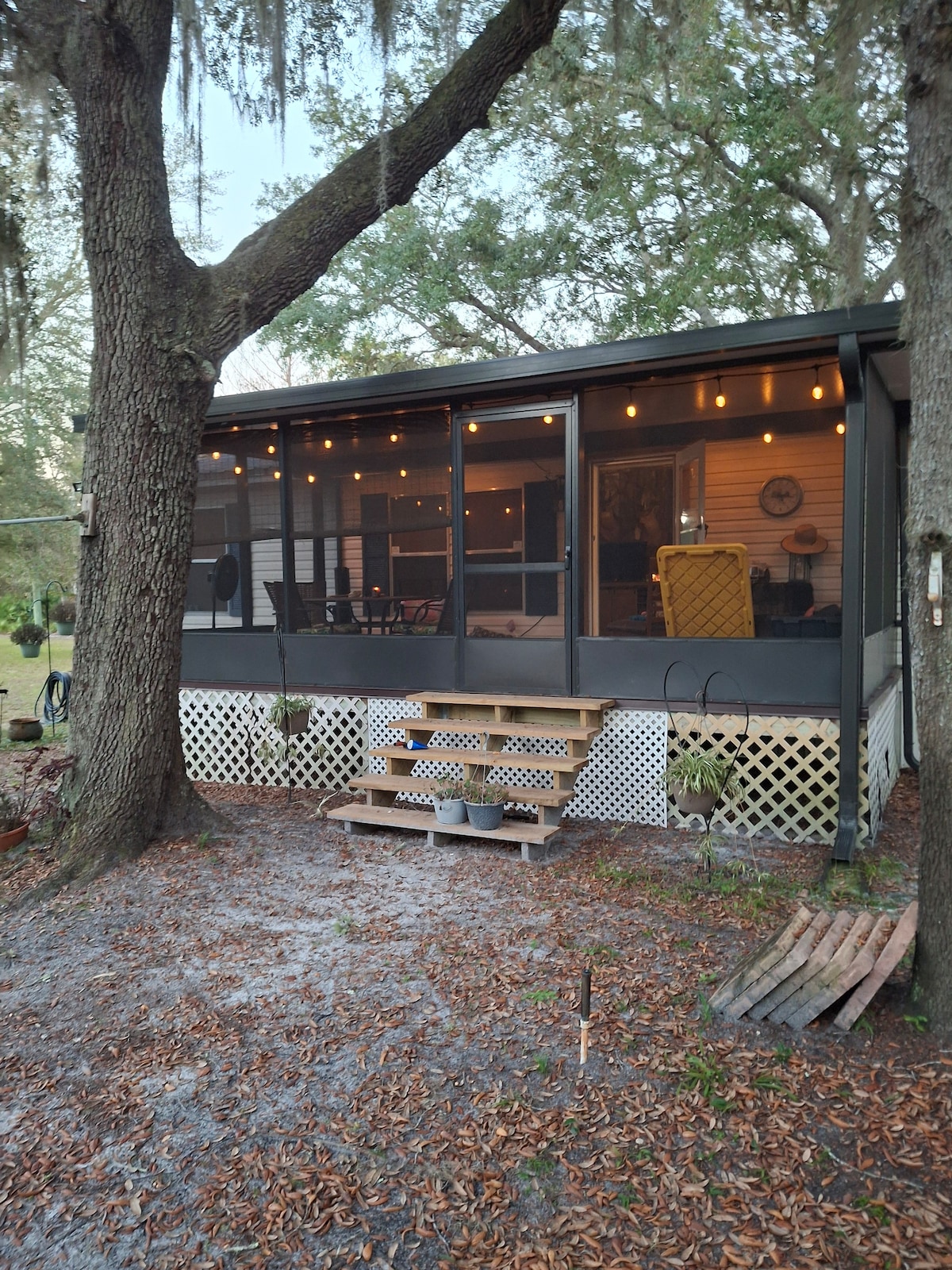 Buna mutlu yer diyoruz. 2 yatak odası, 2 banyo ve oturma odasında çekyat. Bu harika küçük yer, büyük gölgeli meşe ağaçlarının altındaki bir kanalda bulunuyor. Olta donanımınızı kurabileceğiniz veya sadece ailenizle takılabileceğiniz büyük, müstakil, paravanlı bir küçük mutfağı vardır. Kano, balık oltası, jet ski ve/veya teknenizi getirin. George Gölü'nün üst kısmında güzel bir özel tekne rampasına ve su taşıtınızı bağlayabileceğiniz bir yere erişim. Silver Glen ve Salt Springs sadece bir tekne yolculuğu uzaklıkta.