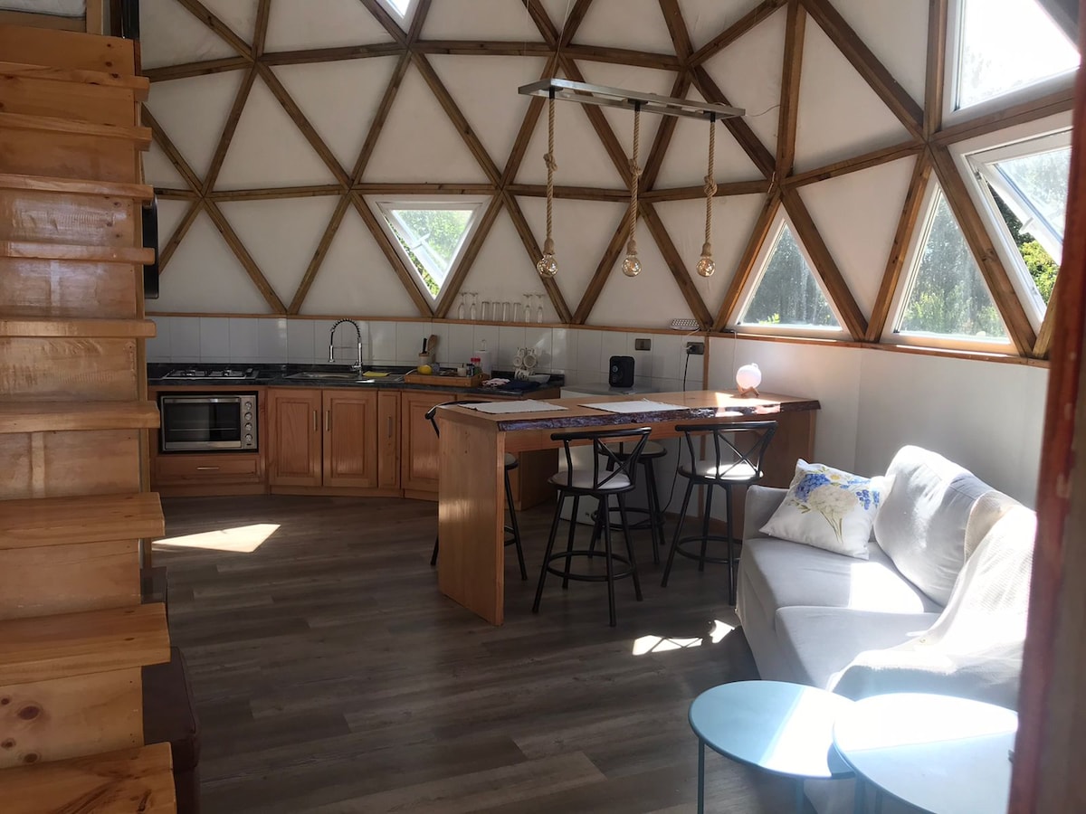 Bu unutulmaz kaçışta doğayla bağlantı kurun. Bir kubbede konaklama deneyimini yaşayın ve yıldızlı gökyüzünün manzarasının tadını çıkarın. Yağmurlu iklimimiz nedeniyle yağmuru ve rüzgarı içeriden yoğun bir şekilde hissedin. Frutillar şehrimizin harika çevresini keşfedin, volkanlar - göller - gastronomi - sanat ve doğanın birçok güzelliği hizmetinizde. Sizi deneme sürüşümüzde bekliyoruz, bu proje üzerinde hala çok çalışıyoruz. Ibaceta-Benn Ailesi