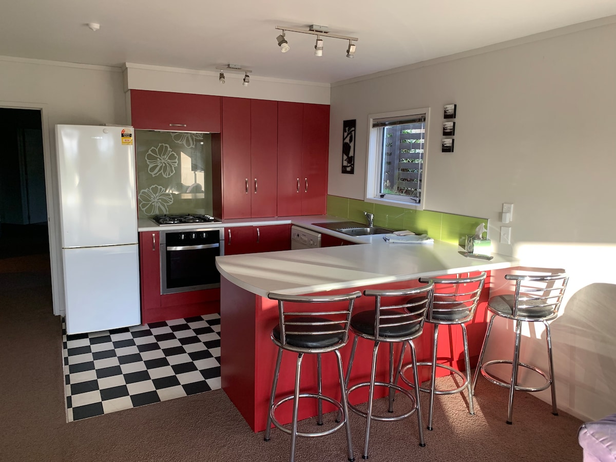 Modern, çok temiz, rahat ve sıcak yeni inşa edilmiş (2 yaşında), bağımsız 2 yatak odalı ünitemizde konforlu bir konaklama geçireceksiniz. Two Mile Bay'deki Taupo kasabasından 4 km uzaklıkta, Botanik Bahçeleri'nin yanında ve göl kıyısından 1 km uzaklıktadır. En fazla 4 kişi için uygundur, ancak 5 ve 6 misafir için salondaki rahat şilte tipi çekyat ile 6 kişiye kadar konaklama sağlar. Lütfen bunu unutmayın.