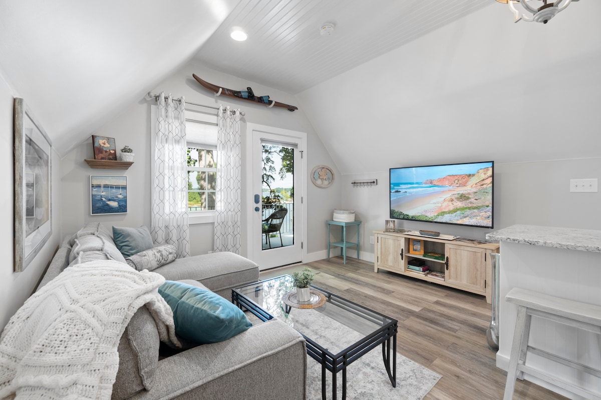 Relax and immerse yourself in Lake Norman's culture at The Loft on Lakeshore. Whether it be a couple's getaway, special occasion, a quick stop while traveling or scouting out the LKN area, we welcome you! Located in a quiet neighborhood only 1.5 miles off I-77, the Loft is a private second floor guesthouse overlooking Lake Norman. You'll also have access to an outdoor balcony, kayaks, paddle boards, the lake, beach, fire pit, and gazebo.