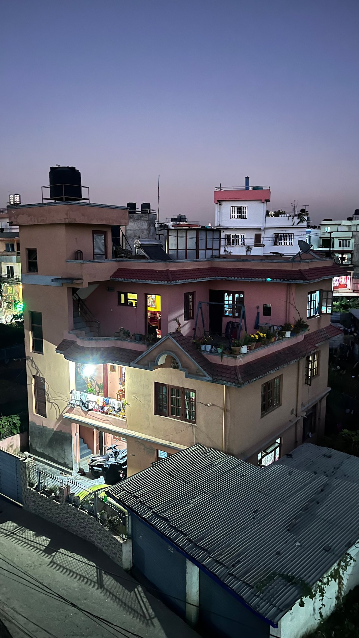 Katmandu'ya 12 km uzaklıkta bir orman tepesine kurulmuş olan huzurlu toprak torbası çatı katı evimiz derin bir dinlenmeye davet ediyor. Meditasyon için cam bahçenin tadını çıkarın veya yemyeşil bir yemek ormanının üstündeki verandada dinlenin. Sadelikle kök salmış, dinginlik için yapılan bir sevgi emeği; kuş cıvıltılarıyla uyanın, Himalaya manzarası eşliğinde çayınızı yudumlayın veya orman patikalarında dolaşın. Yavaş günler, yumuşak sessizlik ve temiz hava için mükemmel. Hızlı kablosuz internet bağlantısı ve pikap mevcuttur. Şehirden 40 dakika uzaklıktaki eşsiz sığınağımızda gevşeyin, rahatlayın ve enerji toplayın. Tam bir huzur.