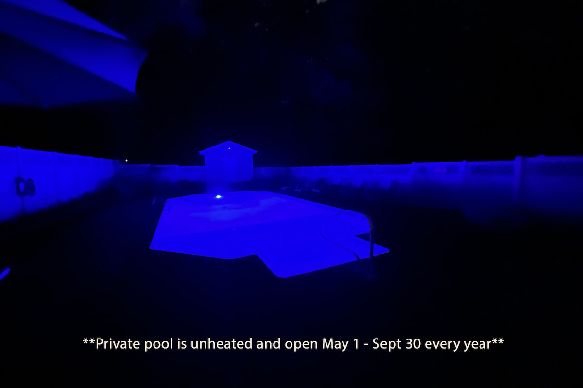 Take a break and unwind at this peaceful oasis. If you like to be close to everything but still want some quiet time this is your place. Have your morning coffee while setting outside on the porch enjoying nature. Perhaps you are an early riser and would like to do some yoga on the large pool deck are take a swim. We also have a shelter where you could read a book and relax as well. You may also see some of the families of deer that often visit in our yard.