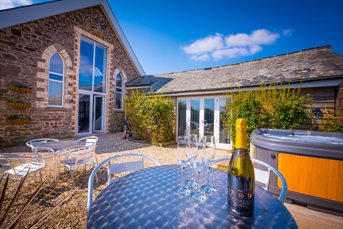 Gelin ve Exmoor'un eşsiz manzarasına ve rahat şık iç mekana sahip yeni dönüştürülmüş ahırımızda kırsal bir inzivanın tadını çıkarın. Aktif bir çiftliğin içinde özel olarak yer alan geniş verandada, tenha bahçede veya lüks jakuzide dinlenin. Her yatak odasında bağımsız banyo ve duşlu geniş bir ebeveyn banyosu vardır. Yerden ısıtma ve sıcak bir odun sobası. Ahırda elektrikli araç şarj cihazı var. Plajlar ve bozkırlar arabayla yarım saat mesafede. Çalışan bir çiftlik içinde olduğumuz için ne yazık ki köpeklere izin veremiyoruz.