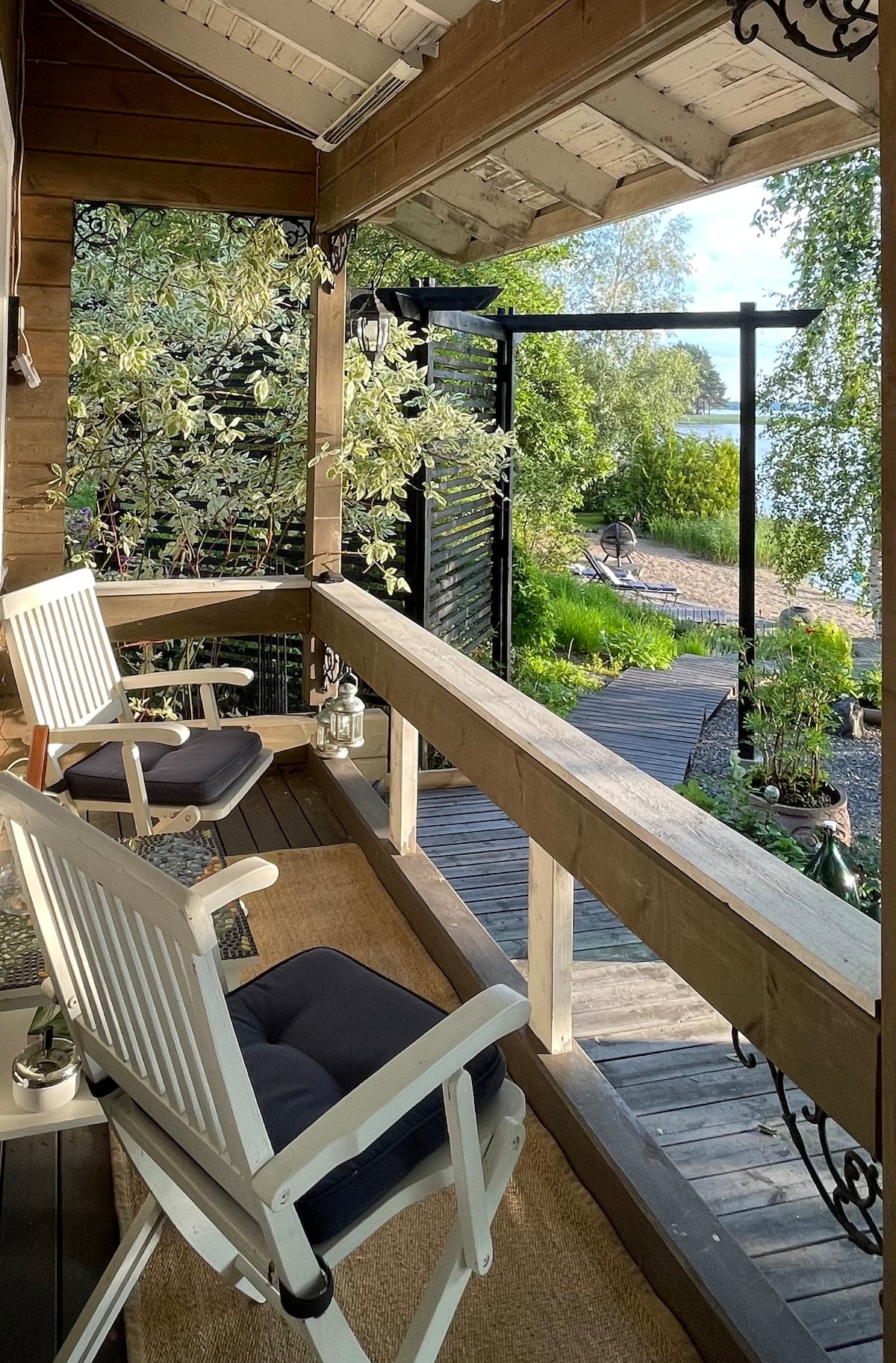 Büyük pencerelerinden muhteşem bir göl manzarasına sahip şık ve güzel döşenmiş 100m2 villa. İyi donanımlı ev, geniş teras alanları, sahil saunası ve açık hava jakuzisi (ek ücret karşılığında). Modern açık mutfak, yemek alanı, geniş oturma odası, 2 yatak odası, iki kişilik çatı katı ve tuvalet/banyo. Muhteşem göl manzaralı güzel villa. İyi ekipmanlı ev, geniş teraslar, göl kenarında sauna ve jakuzi (ekstra ücret karşılığında). Modern mutfak, yemek alanı, oturma odası, 2 yatak odası, 2 kişilik çatı katı, banyo.