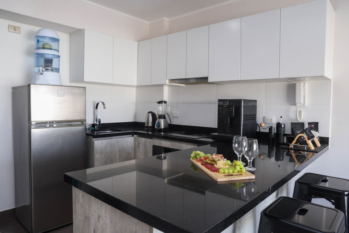 Miraflores Center'da modern 2 yatak odalı daire | Çift kişilik king boy yatak ve klima