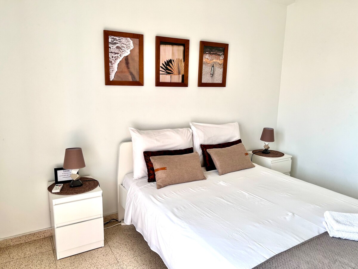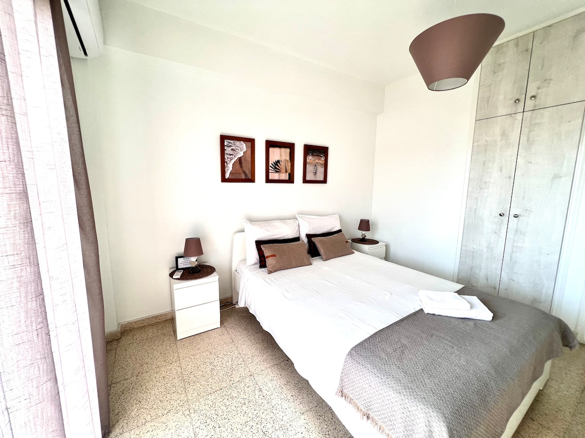 Parlak ve ferah şehir merkezi dairesi! Büyük, tam donanımlı bir mutfağı, konforlu oturma odası ve yemek alanı olan konforlu 2 yatak odalı bir daire. İki özel güneşlenme balkonunun keyfini çıkarın. Konum daha iyi olamazdı: Şehrin tam göbeğinde, plaja sadece 7 dakika mesafede. Kısa bir mesafe içinde büyük bir süpermarket (Zorbas), kafeler ve Havaalanından Eski Hastane durağına 425 numaralı otobüse binebilirsiniz. Daire caddenin hemen karşısında yer alıyor.