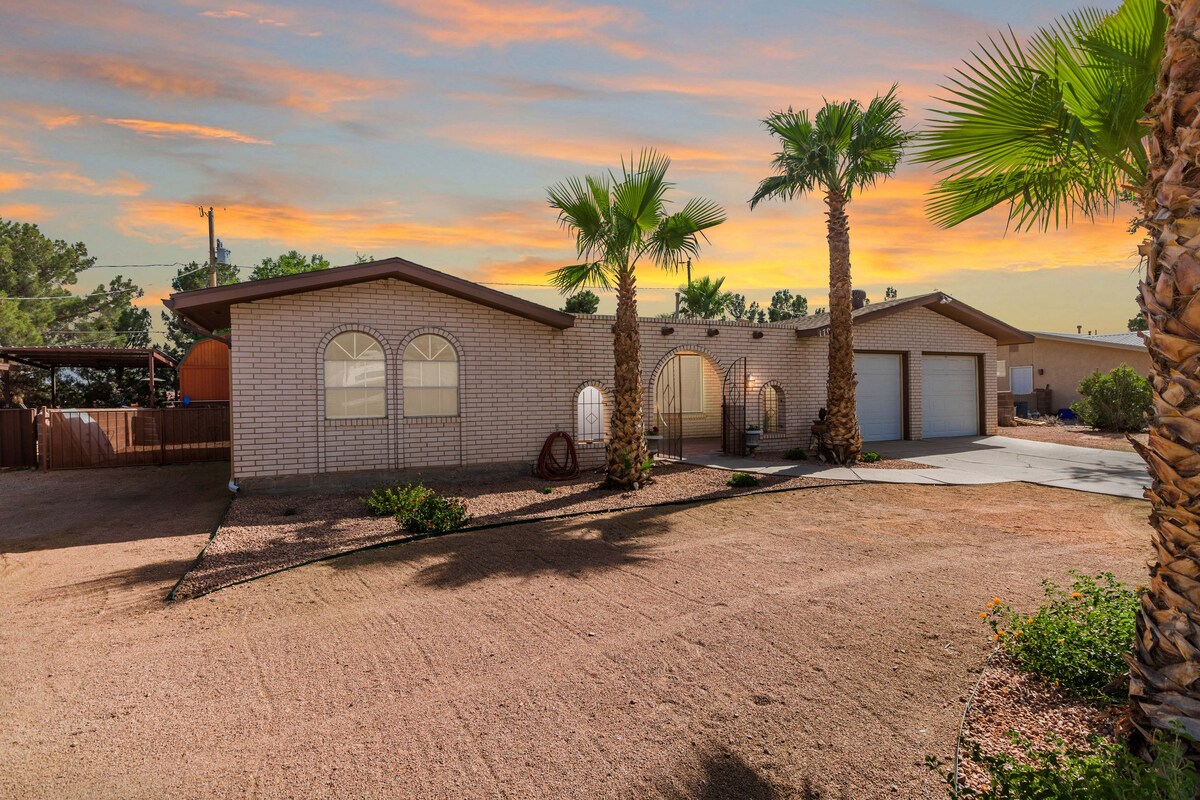 Rahatlama, sadelik ve konforun harika bir konaklamanın anahtarı olduğu zen sığınağımızda gevşeyin ve gençleşin! Yağmur duşlarımız gibi spa'mızda kendinizi şımartın! Doğal terrecota beton ile yeni yenilenmiş çağdaş iç mekanlarımızın keyfini çıkarın. Özel verandada arkadaşlarınızla ve ailenizle ızgara yapmanın tadını çıkarın veya ateş masasının etrafında veya jakuzide oturarak romantik bir akşam geçirin! NMSU 5 mil, White Sands 45 mil, Hwy-70, I-10, I-25 Old Mesilla 5 mil, hastaneye 1 dakikadan az erişim