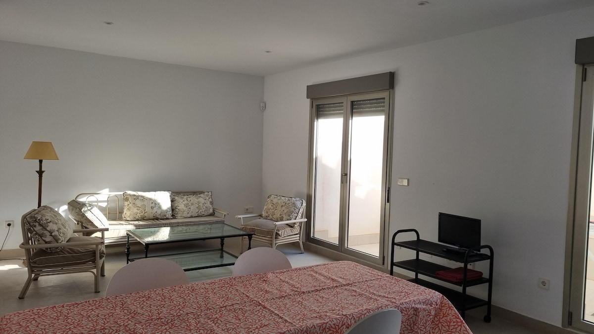 Sahile 20 metre uzaklıkta daire. Banyo yapmak küvetinizi takmak ve havlu almak kadar rahattır. Şehir merkezinde olmak, köyün sunduğu tüm hizmetlere, süper, eczaneye, restoranlara, tapas barına, tekne gezilerine ulaşırsınız. . . Mobilyalar yeni, yataklar, kanepe . Her şey, bulaşık makinesi ve fırın ile donatılmış mutfak. İyi bir wifi bağlantısının yanı sıra Movistar plus, Netflix, YouTube'a sahiptir. Rahat bir tatil için ideal.