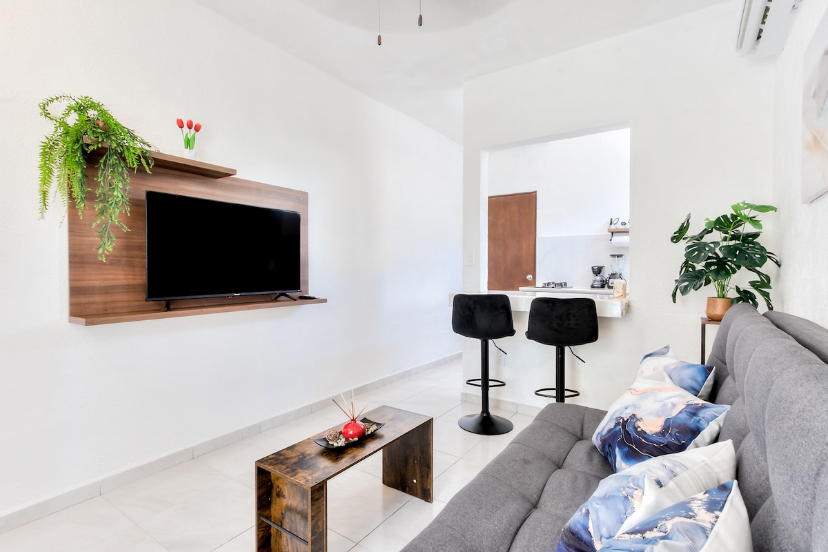 🌞 Cancún'da rüya gibi bir tatil yapın! 🌴 Herkes için mükemmel bir yer: 🧑🤝🧑 Yetişkinler | 💑 Çiftler | 👶👧Aileler |🎉 Arkadaşlar Departamento en zona tranquila ✔ Şehir merkezine 10 dakika | Otel bölgesine 12 dakika Dâhil olanlar: 2 yatak odası (3 yatak ve klima) • Geniş yemek odası • Oturma odası • %100 donanımlı mutfak • Çamaşır odası • Balkon • Otopark 🚶♂️Şunlara yakın: 🛍️ Las Plazas Outlet Cancun AVM 🏧Süpermarket: Soriana ve Chedraui Selecto 🏪Mini Süpermarket: Oxxo, Go Mart Otel bölgesine🚏 toplu taşıma