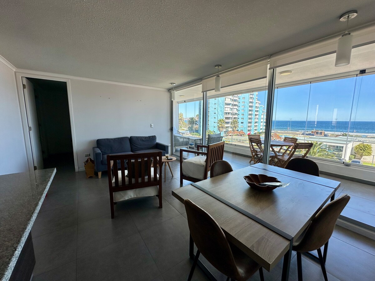 Plajın önünde harika bir konum, okyanusa mükemmel bir manzara, tam donanımlı mutfak, birçok restoran ve bara yürüme mesafesinde. Şehir merkezine çok yakın. Konumu çok iyi, en üst katta ve denize bakan bir daire. Geniş ve çok iyi donanımlı teras. Her şey insanların konforlu bir konaklama geçirmeleri ve ihtiyaç duydukları her şeye sahip olmaları için düşünülmüştür. Instagram: RENTDPTO_LASERENA Del Mar Bulvarı'nda bulunan mükemmel restoranlara yürüme mesafesindedir.