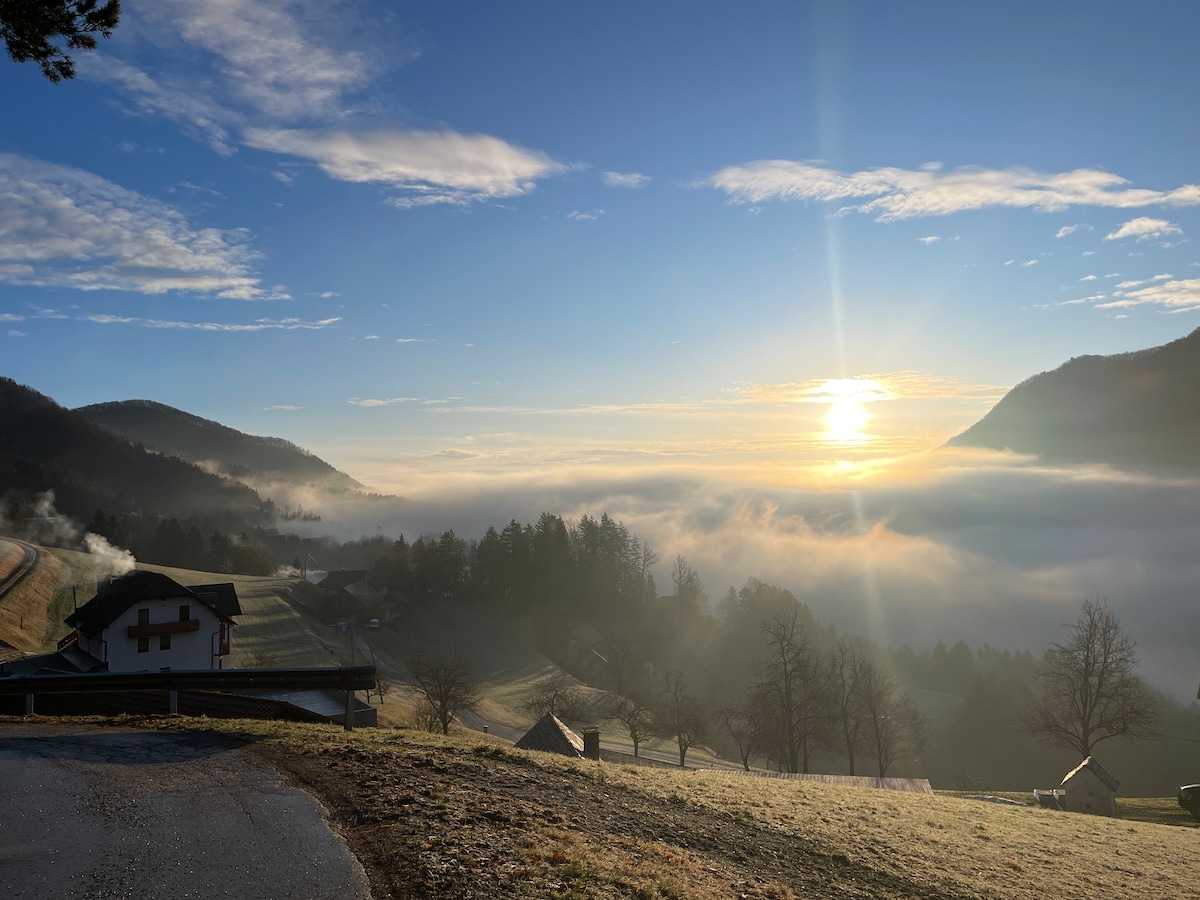 Apartma je del kmetije, ki leži na 450 m nadmorske višine, le 10 km od mesta Laško. Na sončni legi z odprtim razgledom v dolino boste našli popoln umik od mestnega vrveža – tukaj vas pričakajo mir, narava in pristno kmečko življenje. Že neposredno od nastanitve vodijo pešpoti na bližnje razgledne točke, ki ponujajo čudovite panoramske poglede na okoliško pokrajino. Lokacija je idealna za ljubitelje pohodništva, kolesarjenja, fotografije ali preproste sprostitve v naravi.