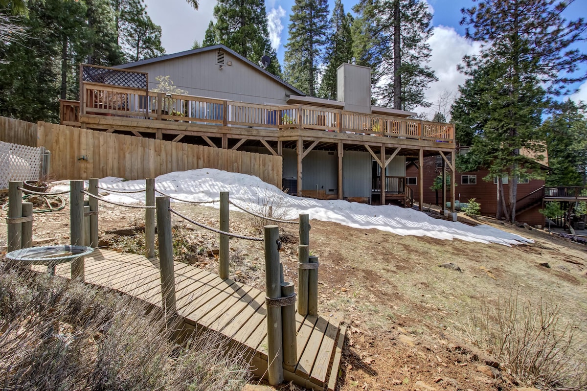 Welcome to our creekside cabin on the all-season Bailey Creek and just 9 miles from Lassen National Park. Our large 2000 sq. ft. cabin is spacious for a large group of eight with 2 bedrooms downstairs (King Bed & Queen Bed), and a loft bedroom (King Bed) - Go snowshoeing and cross country skiing in winter - Relax on our large multi-level deck to the sounds of the creek - Unwind next to the creekside fire pit - Take in the smells of soaring pine and firs - Recharge with the level-2 EV charger