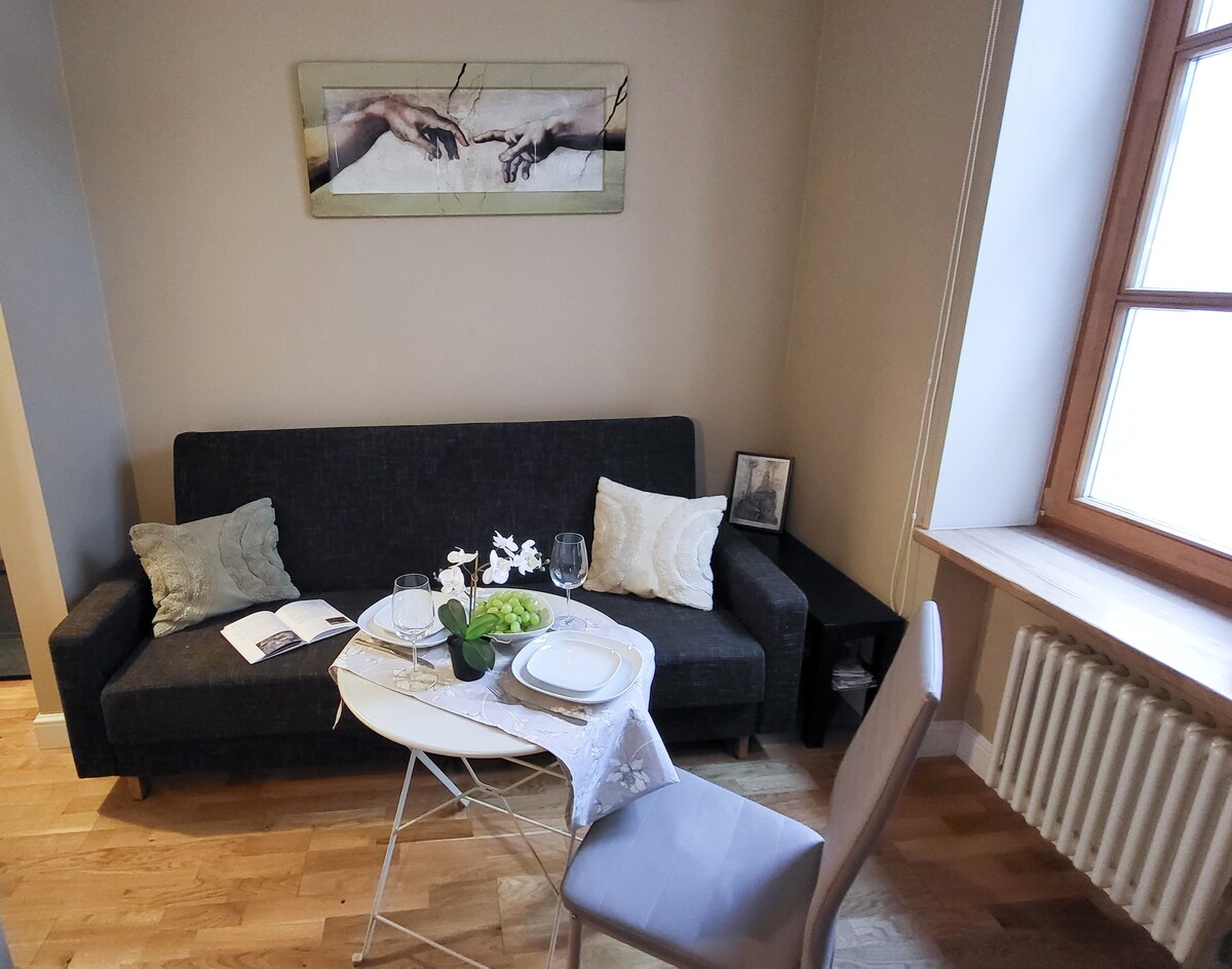 Eski Şehir'in merkezinde, tarihi yenilenmiş bir binanın 2. katında, karartma perdeleri olan 2 penceresi sessiz bir avluya bakan, rahat küçük bir daire. 2 kişilik konforlu bir konaklama için ihtiyacınız olan her şey: 24 saat kendi kendine giriş, hızlı kablosuz internet bağlantısı ve dijital TV, gerekli tüm ekipmanlara sahip bir mutfak, katlanır kanepe yataklı bir uyku alanı, yağmur duşlu bir banyo, saç kurutma makinesi, diğer yararlı şeyler. Dairenin temizliğine özellikle dikkat ediyoruz.