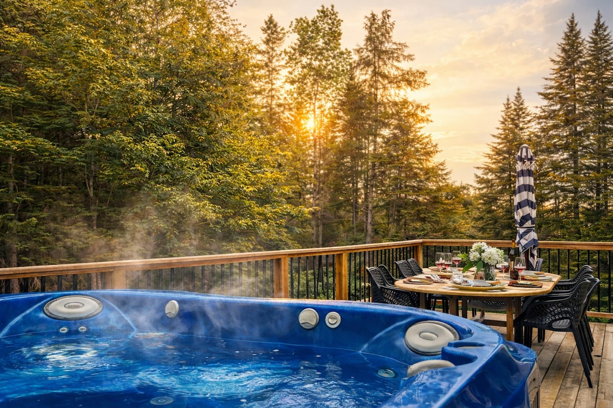 2 kişilik göl kenarında özel dağ evi. Açık hava spası, geniş teras, ateş çukuru, 2 x kano, kano, barbekü, PS3, Roku'lu 2xTV, odun sobası, tam mutfak, birinci sınıf golf sahasına yakın, yürüyüş, yol, dağ ve fat bisiklet, Parc National Tremblant, Tremblant Ski Resort, Mont Blanc, yüzme, St. Bernard, yüksek hızlı kablosuz internet bağlantısı, çamaşır makinesi/kurutucu, kendi kendine giriş, gizlilik, konforlu. İstediğiniz kadar çok veya az aktiviteye sahip harika, özel ve dinlendirici bir dağ evi. Yasal olarak tescil edilmiştir.