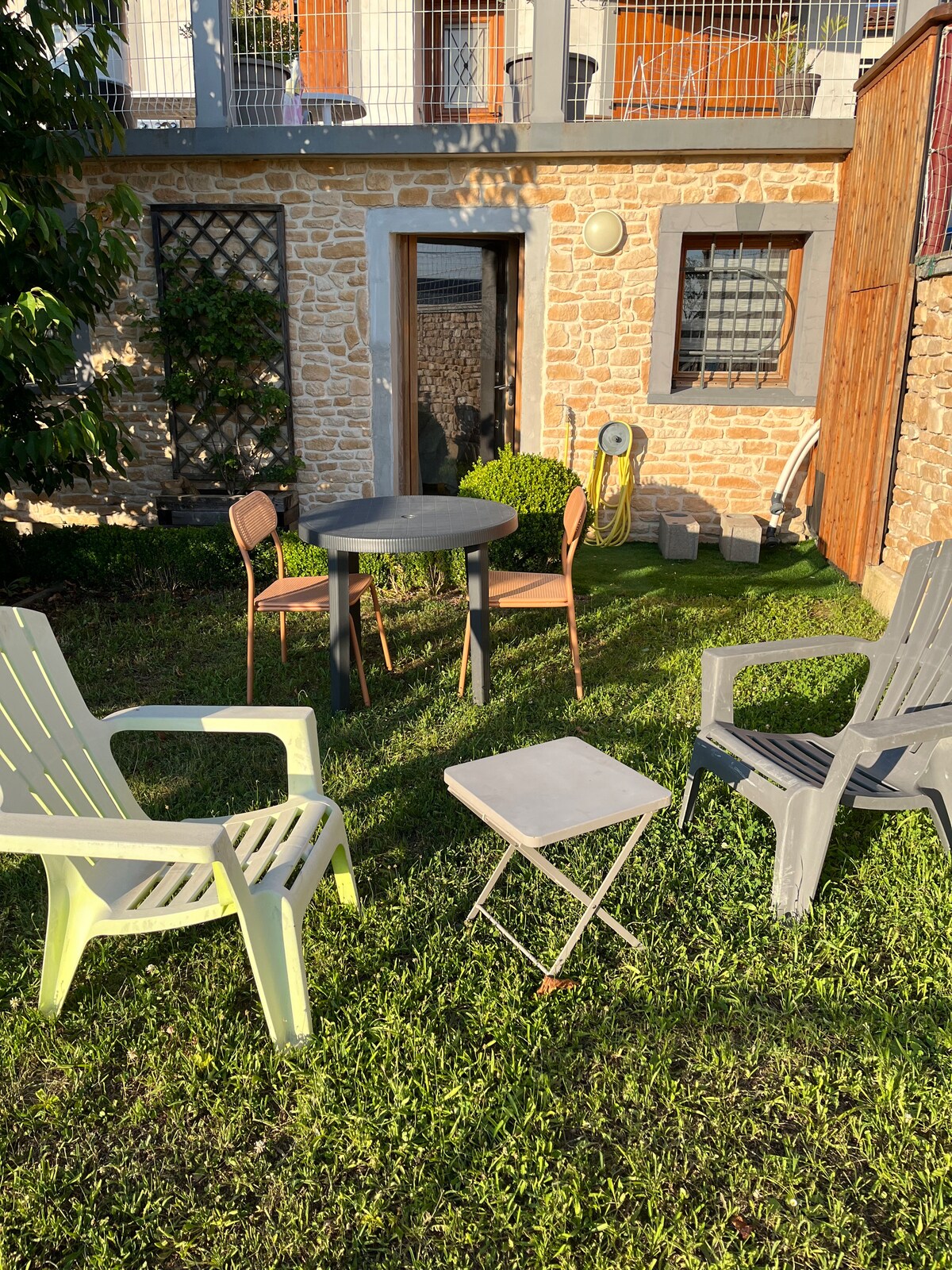 Vous séjournerez au cœur du beaujolais dans le beau village de Theizé. Bâtisse de caractère datant de l'ère napoléonienne en pierres dorées avec entrée indépendante et emplacement voiture. Pièce de 35m² avec cuisine, séjour, espace nuit, salle d'eau et toilette. Vous aurez à disposition grille pain, cafetière, micro onde combiné four, réfrigérateur... espace extérieur avec table et barbecue. Idéalement situé pour les amateurs de randonnées, vélo, running. Pour les chanceux:vue sur le Mont Blanc!