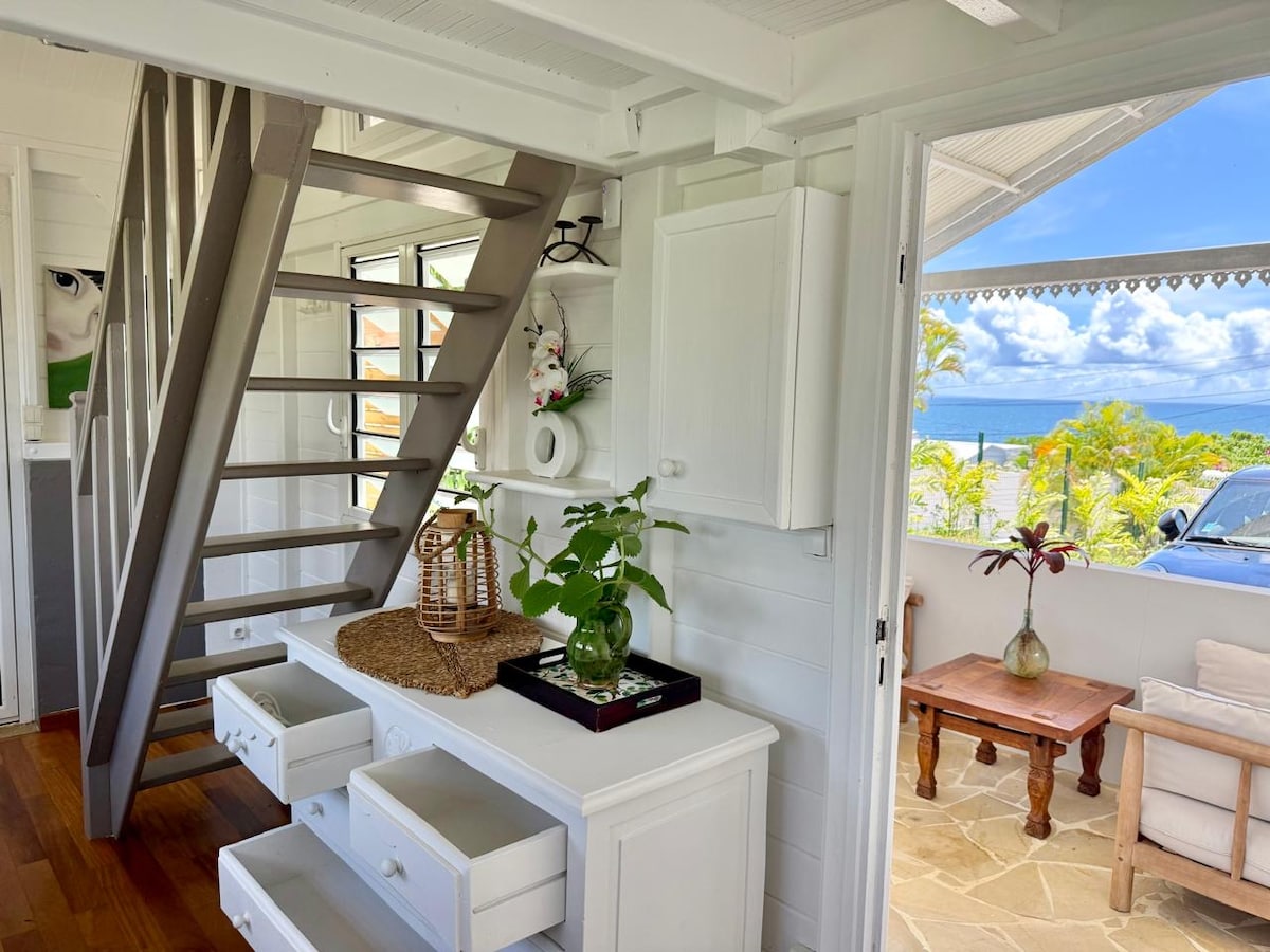 5 kişilik SPA ve tanka sahip üç katlı bungalov (su kesintileri sırasında). Kıyıdan 80 m uzaklıkta konforlu konut. 160 cm yataklı 2 adet klimalı oda + 1 adet bebek yatağı, gerekirse, oturma odası, mutfak, kiler, tuvaletli banyo, bahçe katta ayrı tuvalet, veranda ve Karayip denizi ve orman manzaralı 2 adet balkon. WIFI, 2 adet CANAL +, Youtube, Neflix kanalları bulunan televizyon. Özel park yeri. Bungalov, bir patika üzerinden plajlara 3 dakika mesafede. Girişte meyve sepeti