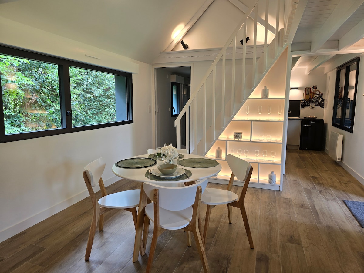 Gelin ve üst düzey hizmetler ve çok düzenli dekorasyona sahip 95 m2 'den fazla bu güzel aydınlık lüks kulübenin tadını çıkarın, sudaki ayaklar (150 m uzaklıktaki plajlar). Huzurlu bir konaklama için çok sessiz bir ortam.