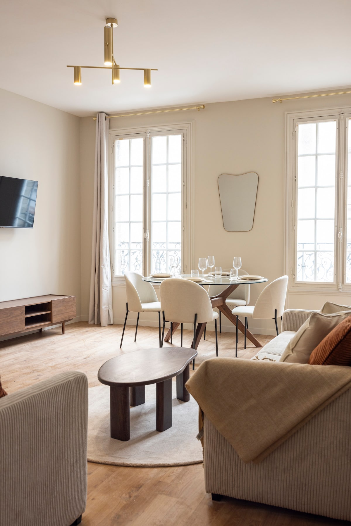 Paris'in kapısında (15 dakika), canlı bir cadde üzerinde, mağazalarla dolu Haussmann tarzı bir binada, Hoche metro istasyonuna (No. 5) birkaç adım mesafede, yeni yenilenmiş huzurlu dairemize hoş geldiniz. Günlük alışverişleriniz ve gezilerinizin tüm ihtiyaçlarını karşılayabileceksiniz. Tamamen izole edilmiş ve özellikle sokaktan gelen gürültü yok. Temizlik hizmetimiz otel kalitesindedir ve ek olarak lüks araçla servis hizmeti sunuyoruz.