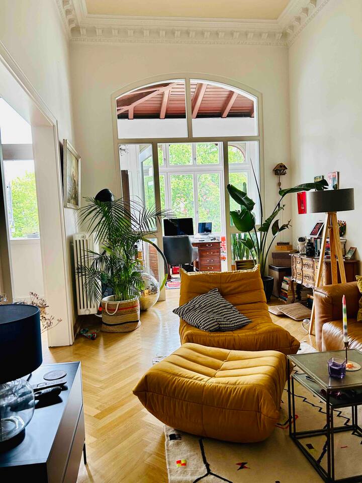 Tarihi "Grafischer Hof JJ WEBER" baskı çalışmalarındaki benzersiz ve özel 35 metrekarelik çatı katımız ve açık alanımız şehir merkezine, tren istasyonuna ve popüler "Eisenbahnstraße" bölgesine sadece birkaç dakika yürüme mesafesindedir. Tam donanımlı mutfak, tarihi bir binada şık bir ortam – sadece çantalarınızı toplayın ve rahatlayın. Netflix, Prime, Müzik, havlular, yatak çarşafları, su ve çay dahildir. % 5 Leipzig konaklama vergisi zaten fiyata dahildir.