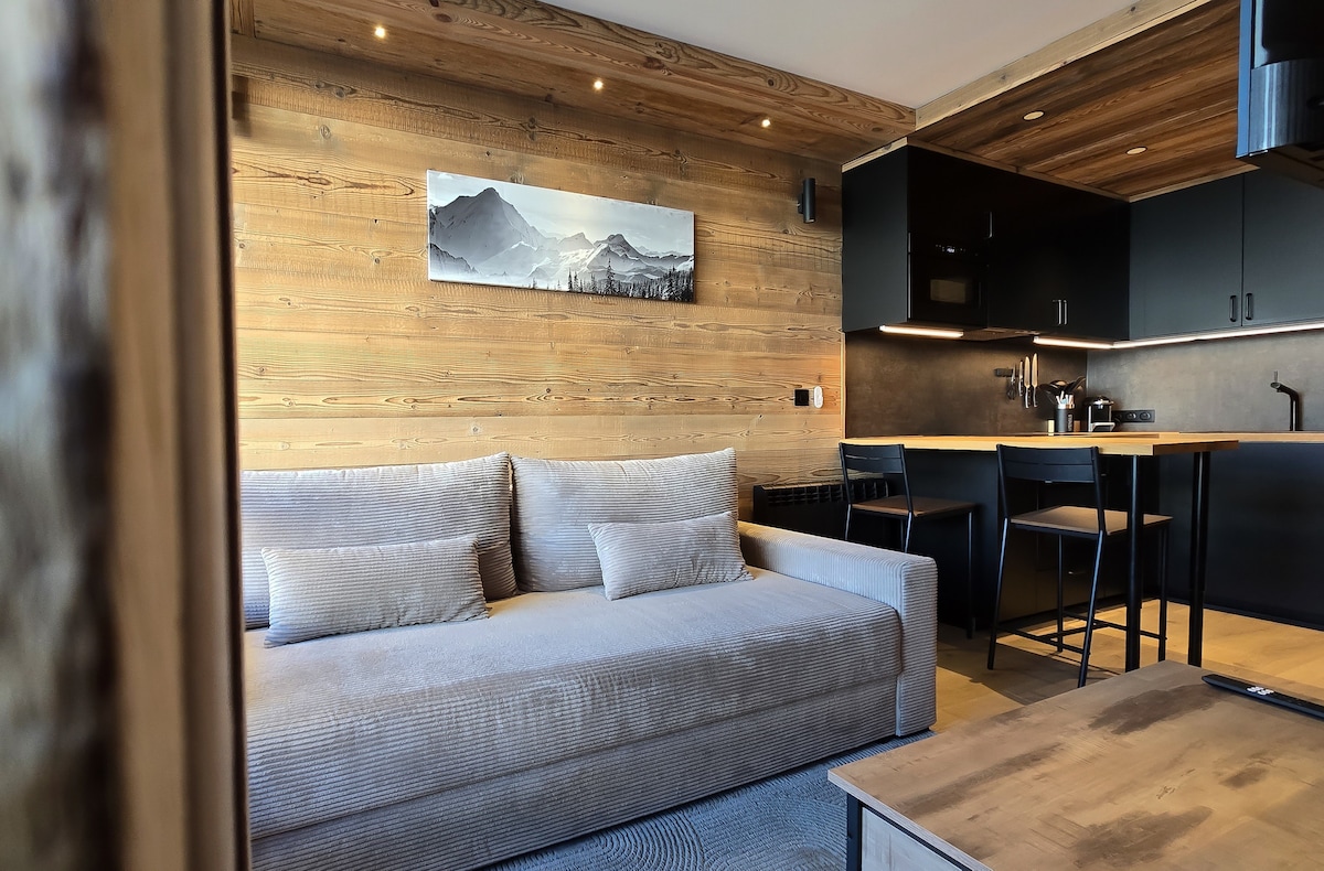 Les Menuires, La Croisette'in kalbindeki sıcak stüdyo "L 'Alizée ". 🏔️ Rezidansın -2 katında bulunan kayak odasından yamaçlara ve kayak asansörlerine doğrudan erişim. ⛷️ Güvenli alan. Tüm etkinlikler ve olanaklar yakındır. ⛄️ Konaklama 3 kişi kapasitelidir. Furnished Rated 2 Flocons Gold ❄️ and 1 ⭐️