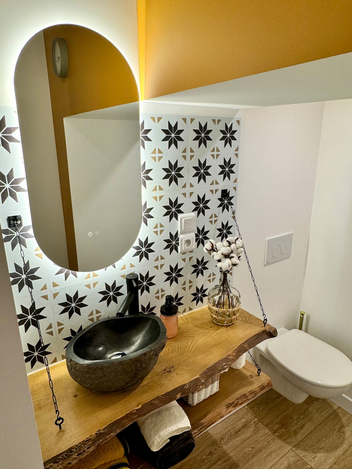 Suite Tournesol bir çift için idealdir; mutfak, yatak odası/oturma odası ve dolaplı salon, duşlu banyo, ayrı tuvalet, radyo ve TV dahil 40 m2. Luberon dağlarına panoramik manzaralı 30 m2 geniş teras. Süit, kahve/çay, bornoz ve harika kalın havlular dahil ihtiyacınız olan her şeyle tam donanımlıdır. Tavana verimli bir elektrikli vantilatör takılmıştır. Çeşmenin yanında oturmak isterseniz salonda fazladan sandalye bulabilirsiniz!